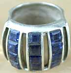 Meticulously crafted from sterling silver, this ring offers a timeless allure and lasting quality. Sterling silver is known for its durability and resistance to tarnish, ensuring your ring maintains its luster for years to come with proper care. The cool, silvery tone provides a perfect complement to the deep blue gemstones. The careful arrangement of the gemstones showcases the skilled craftsmanship behind this unique piece. The design elements, and setting demonstrate a meticulous attention to detail.
