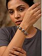 Abstract Stone Studded Triple Panel Open Cuff Bracelet