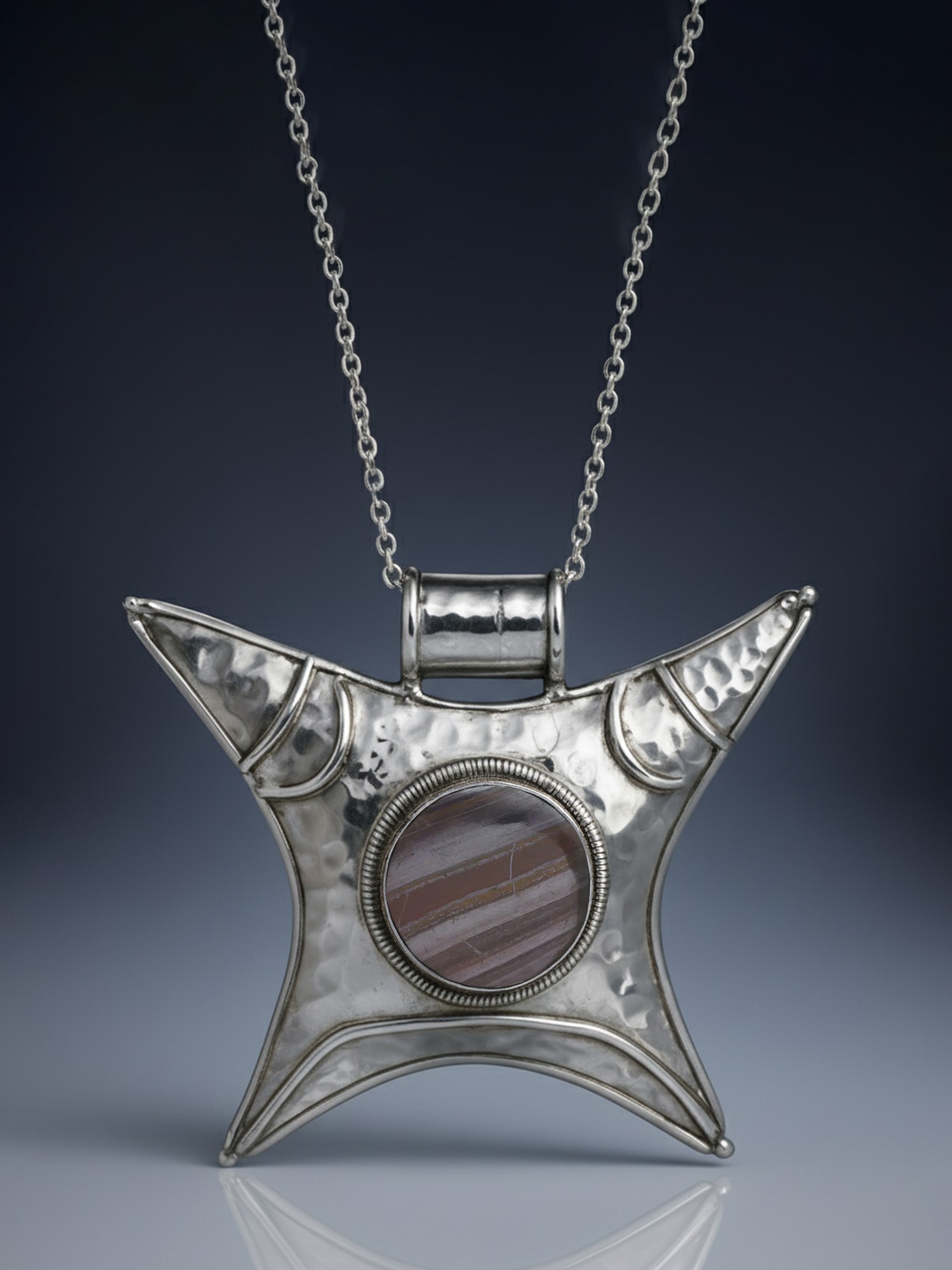 Sterling Silver Pendant with Large Tiger-Eye Gemstone