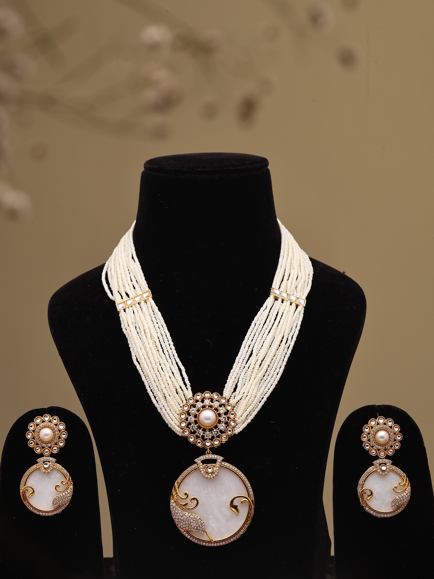 Ivory Pearl Multi-Strand Necklace & Earring Set