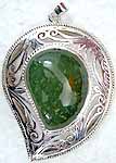 Crafted from high-quality sterling silver, the pendant's setting provides a durable and elegant foundation for the jade stone. The bright, reflective finish of the silver complements the vibrant green of the jade, creating a harmonious and visually appealing contrast. The sterling silver setting is meticulously detailed, with intricate designs that enhance the overall beauty of the pendant. The design is not merely functional; it’s an integral part of the pendant's artistic expression, adding to its unique character and charm.