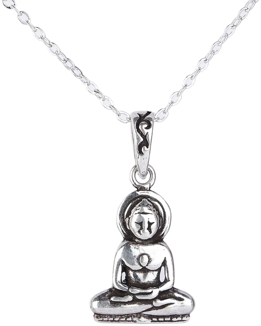 Discover serenity and spiritual connection with this exquisite sterling silver pendant. This intricately designed piece captures the essence of profound peace and enlightenment, embodying the timeless teachings of spiritual masters. Crafted from high-quality sterling silver, the pendant features a beautiful depiction of a revered spiritual figure in a classic meditative pose. The figure is seated comfortably, with hands resting in a gesture of tranquility, and its serene countenance evokes a sense of deep calm and inner peace.