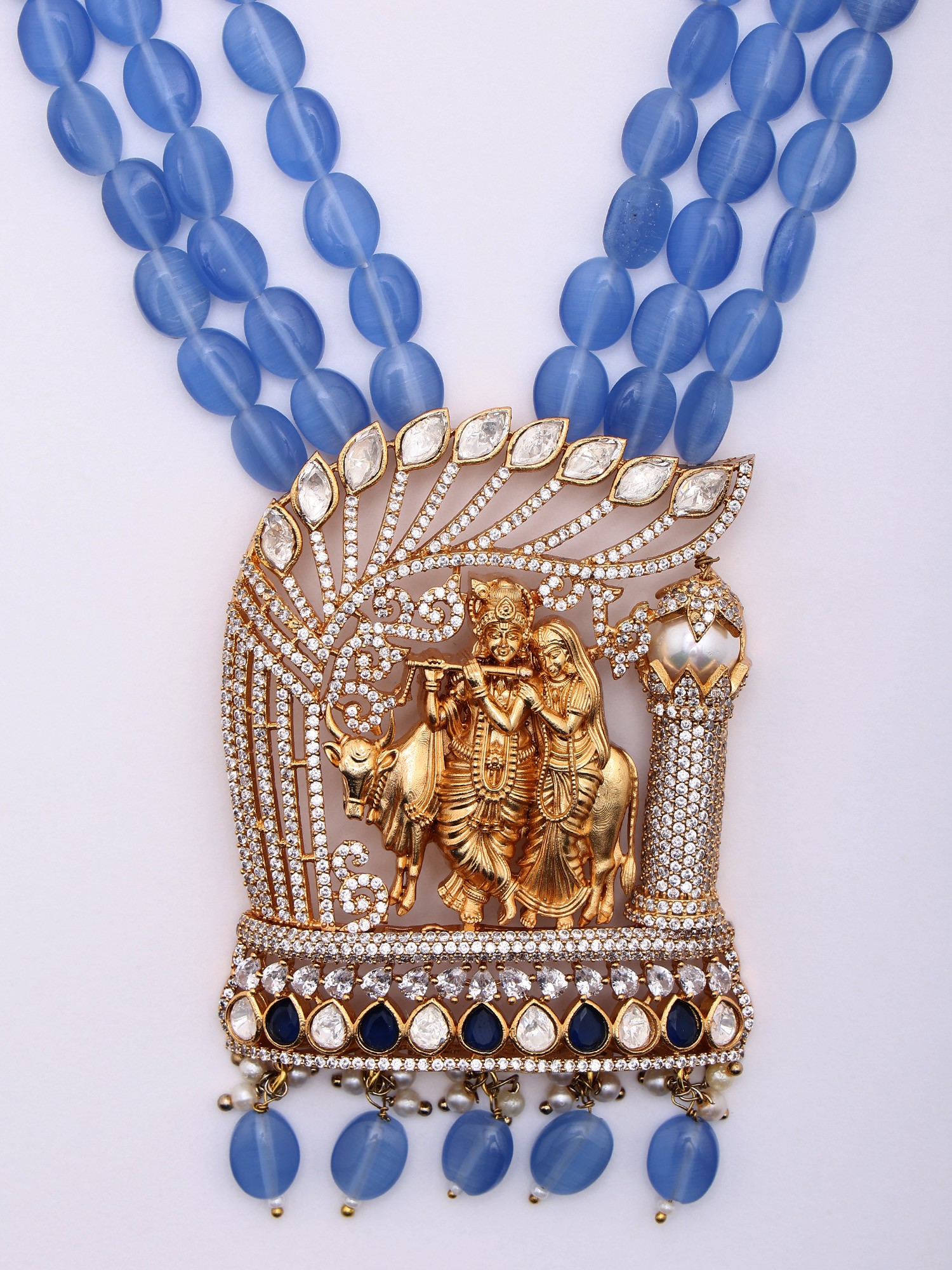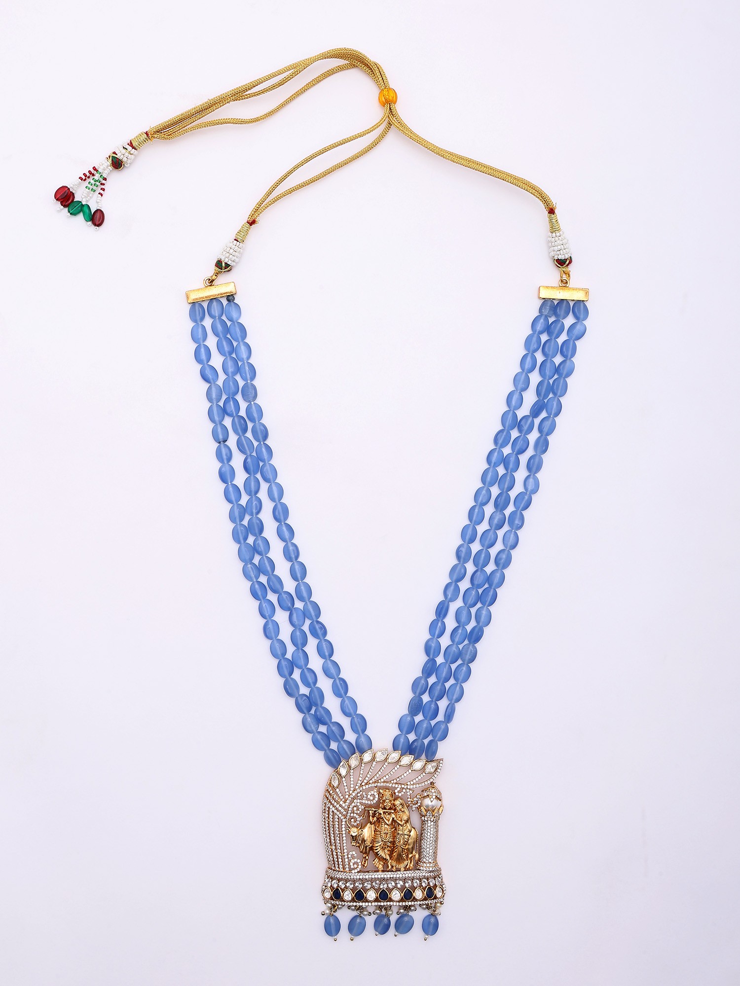 Stone Studded Goddess Lakshmi long Necklace Set with Earrings