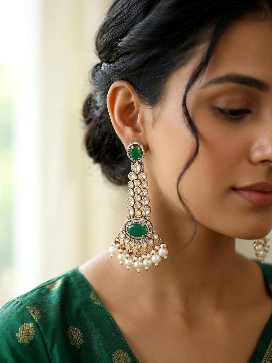 Kundan Bridal Drop Earrings with Pearl Detailing