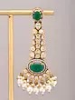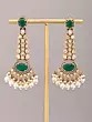 Floral Design Kundan Chandbali Earrings with Green Stones