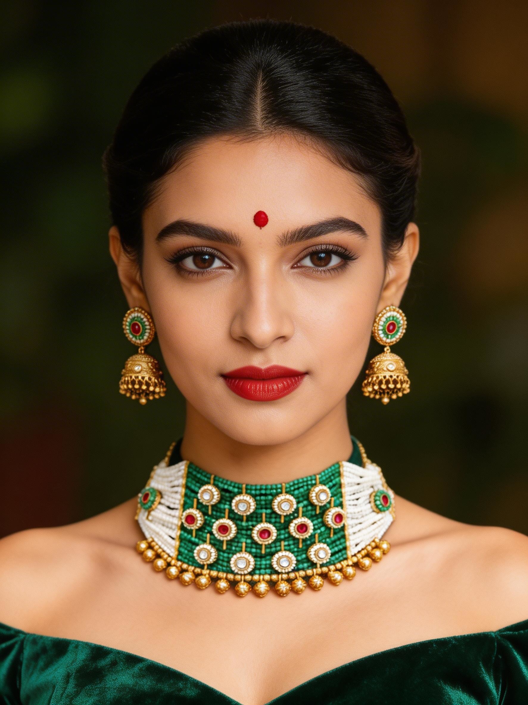 Rajwadi Style Raani Haar: Multi-Strand Green Beaded Necklace