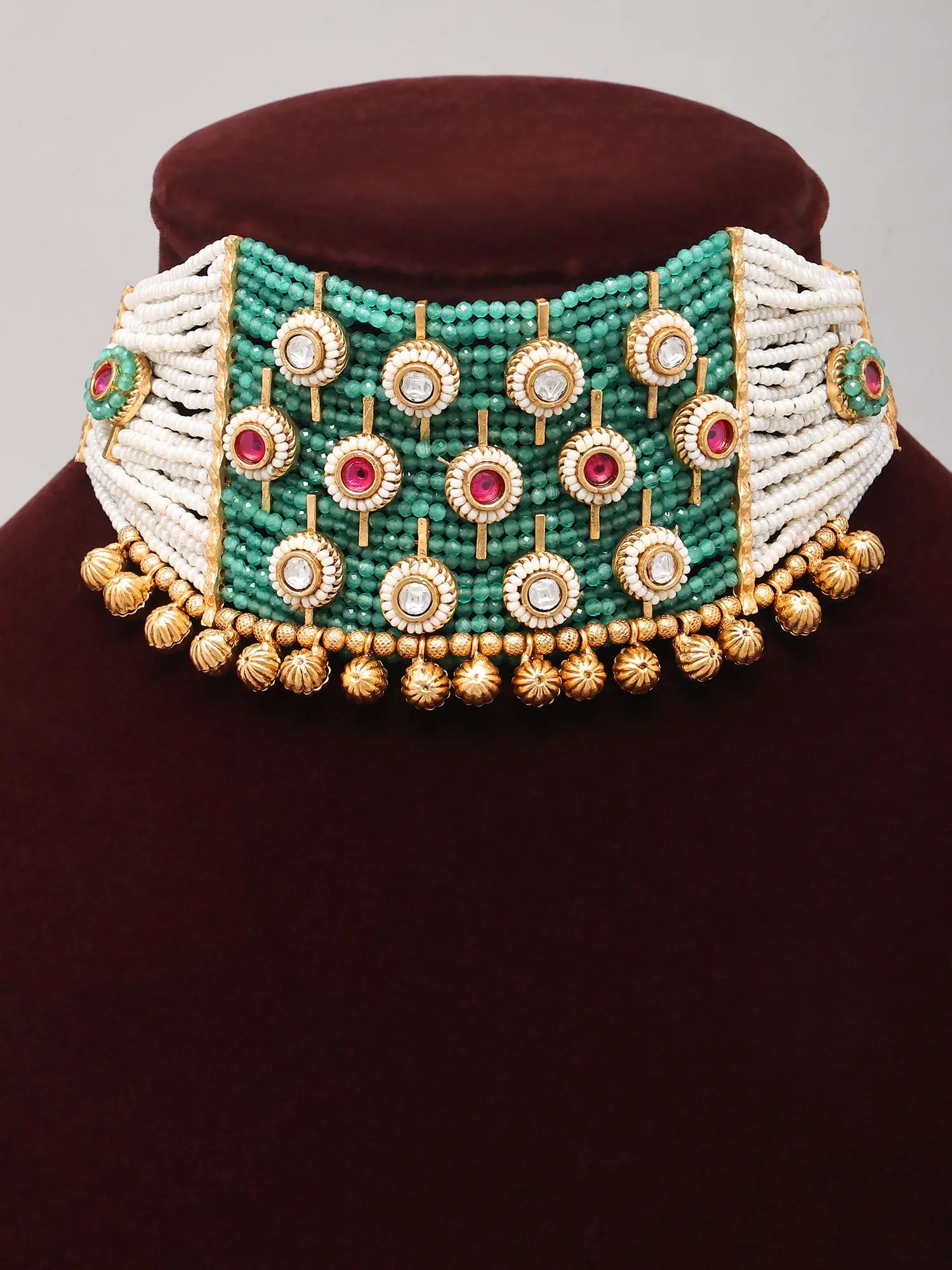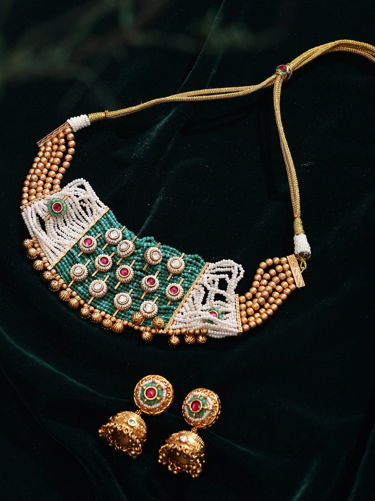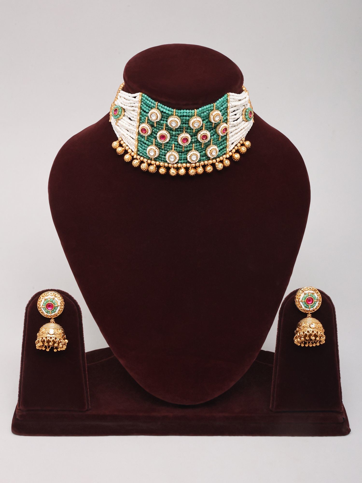 Rajasthani Style Kundan Stone Studded Choker Necklace Set with Green Stones