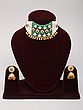 Green Stone Studded Kundan Necklace Set with Earrings