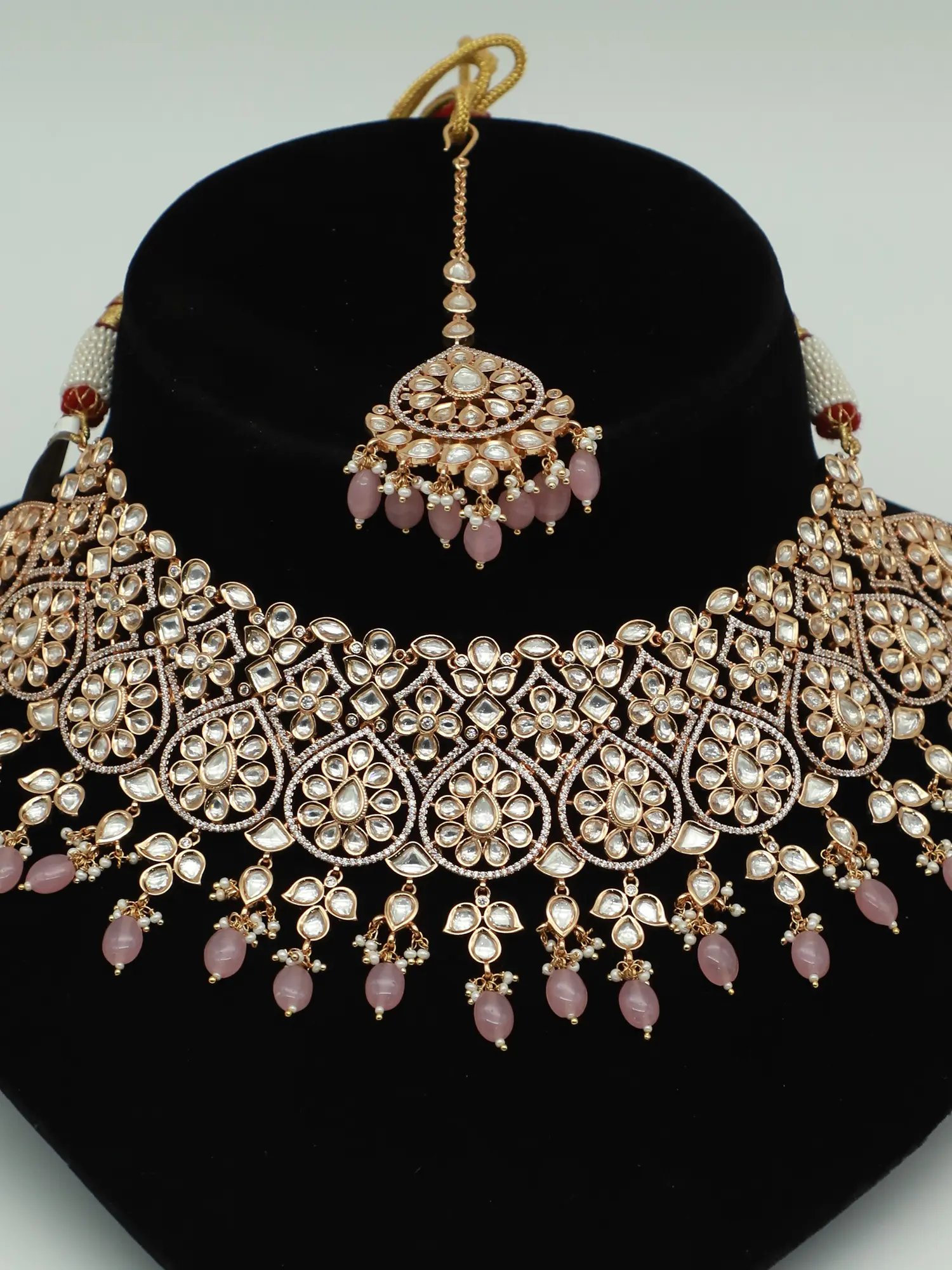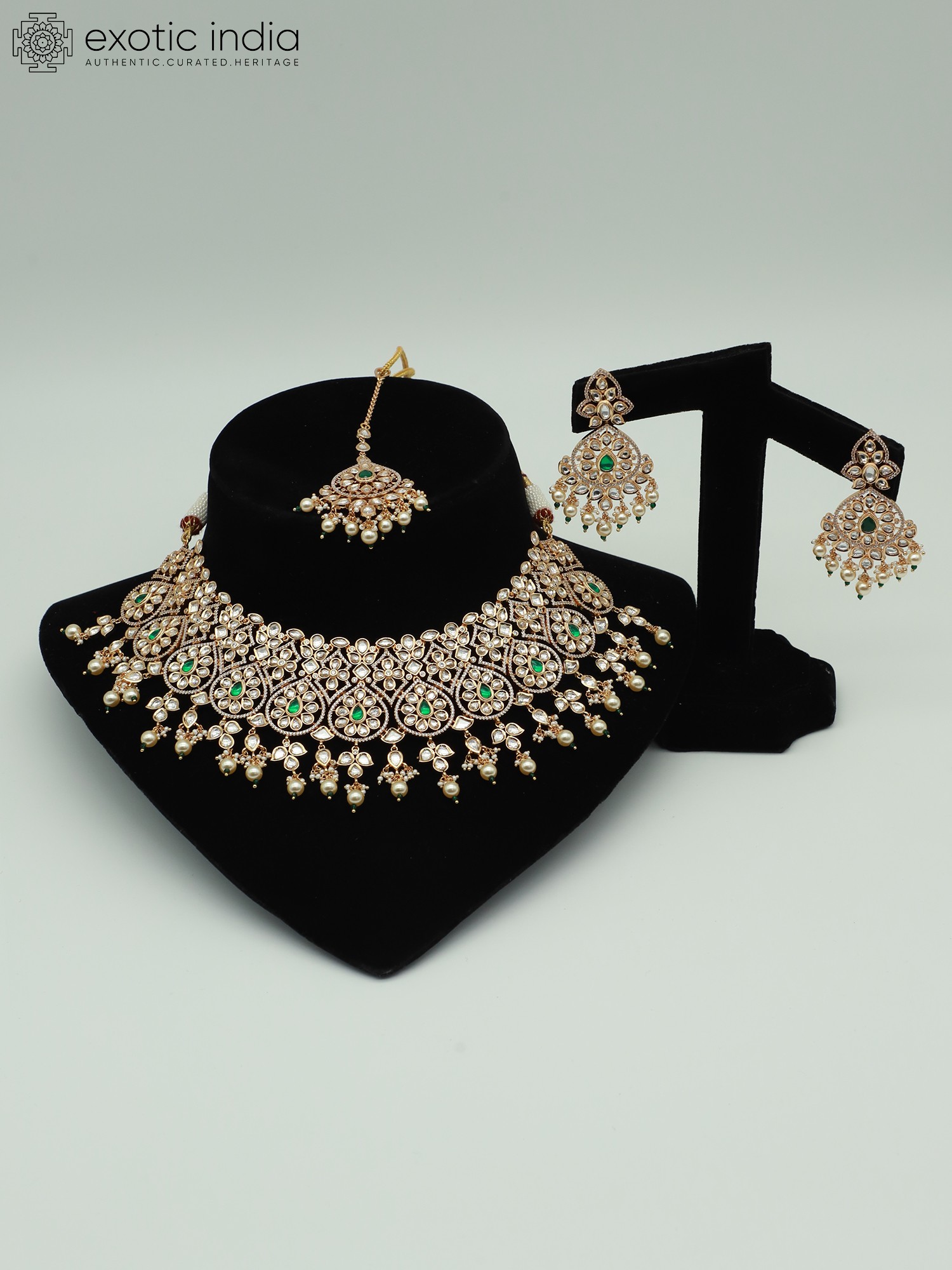 Necklace: 14.2 inch Length Earrings 1.1 inch Height x 0.9 inch Width Mangtika: 5 inch Length