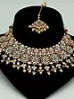Embellished Stone Studded And Beaded Choker Necklace With Earrings And Mangtika