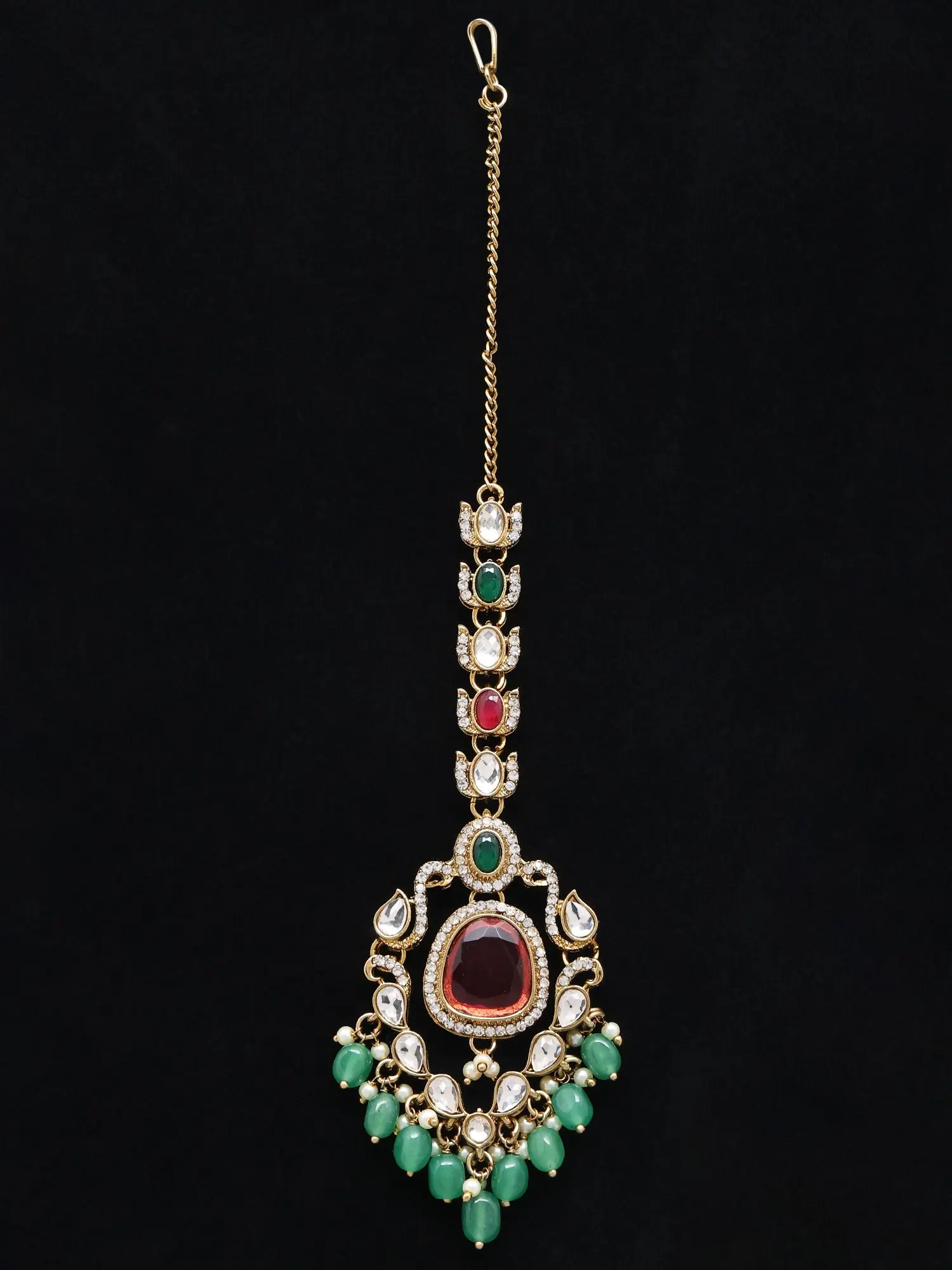 Bridal Choker Set: Green Kundan with Teardrop Maang Tikka