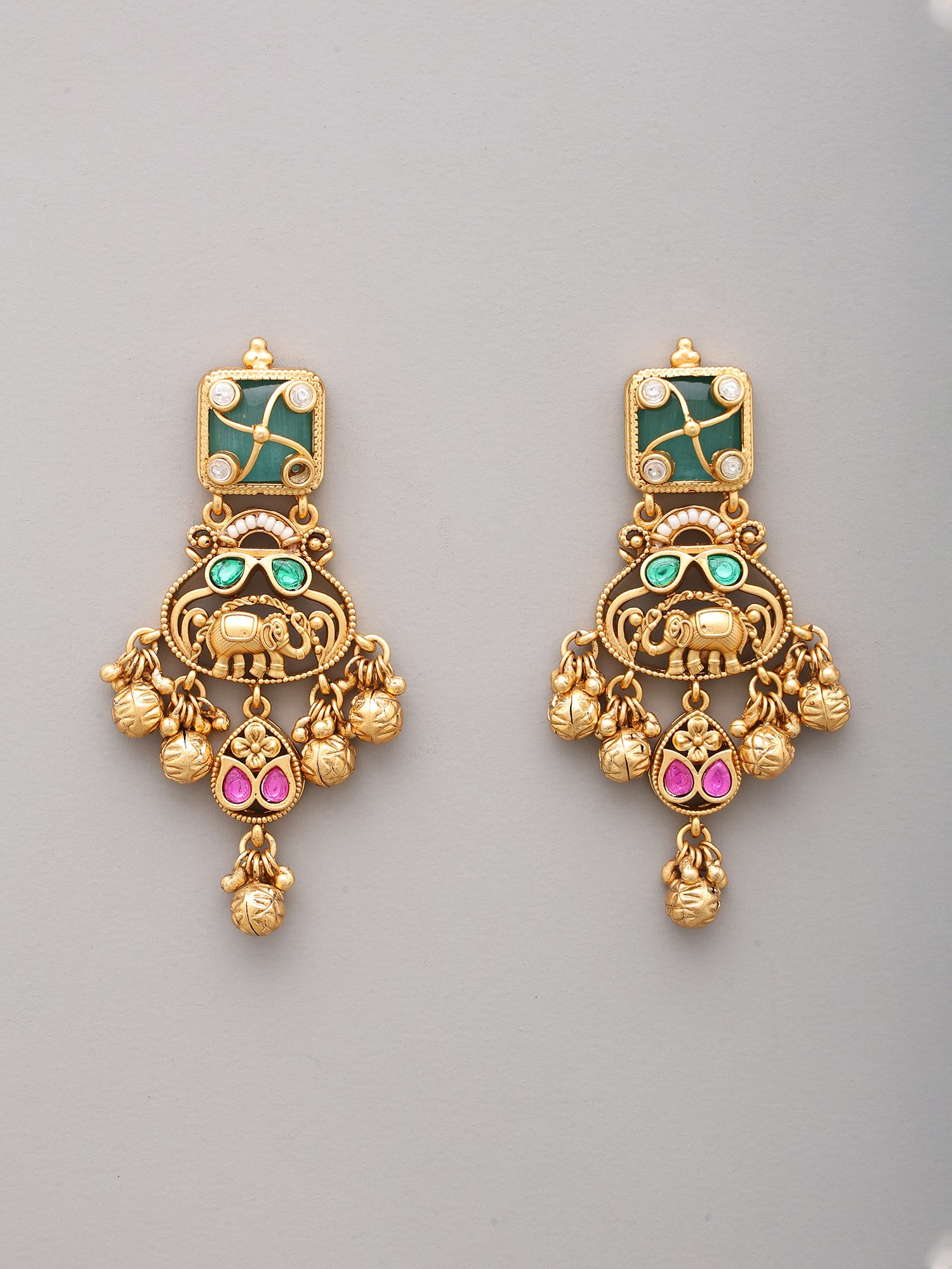 Imagine the gentle sway of the ghungroos as you grace a festive celebration or a formal dinner. This set is perfectly suited to complement silk sarees, traditional lehengas, or even contemporary evening wear, adding a regal touch. The earrings, with their balanced design, can also be worn independently to lend a sophisticated accent to daytime attire.