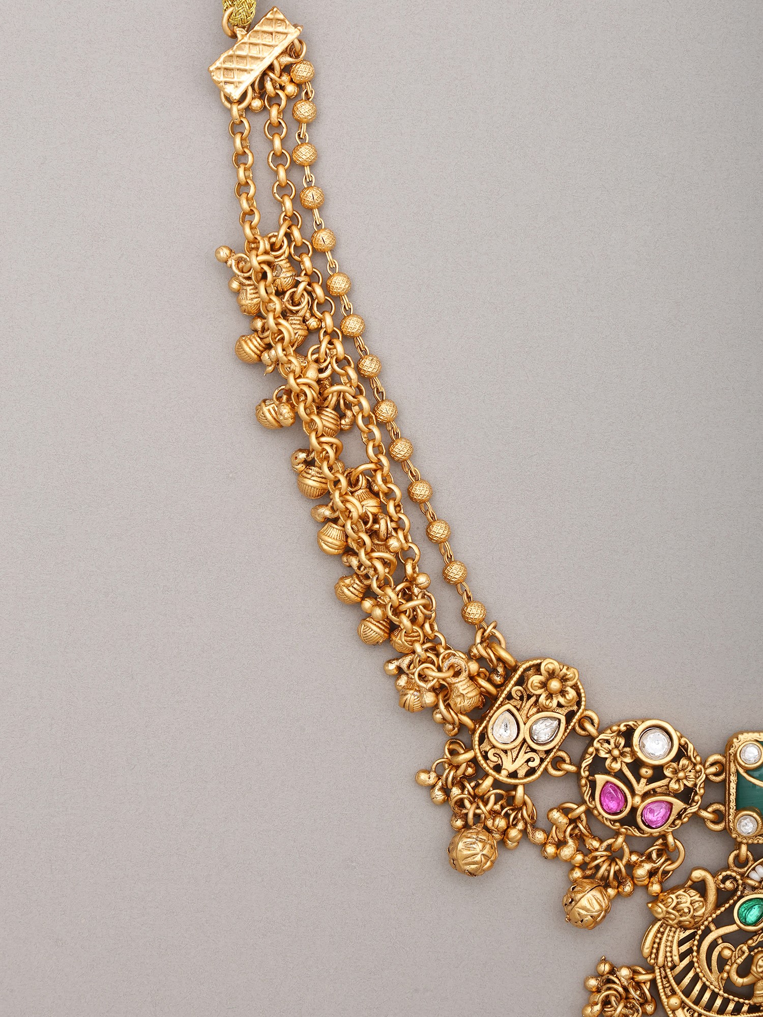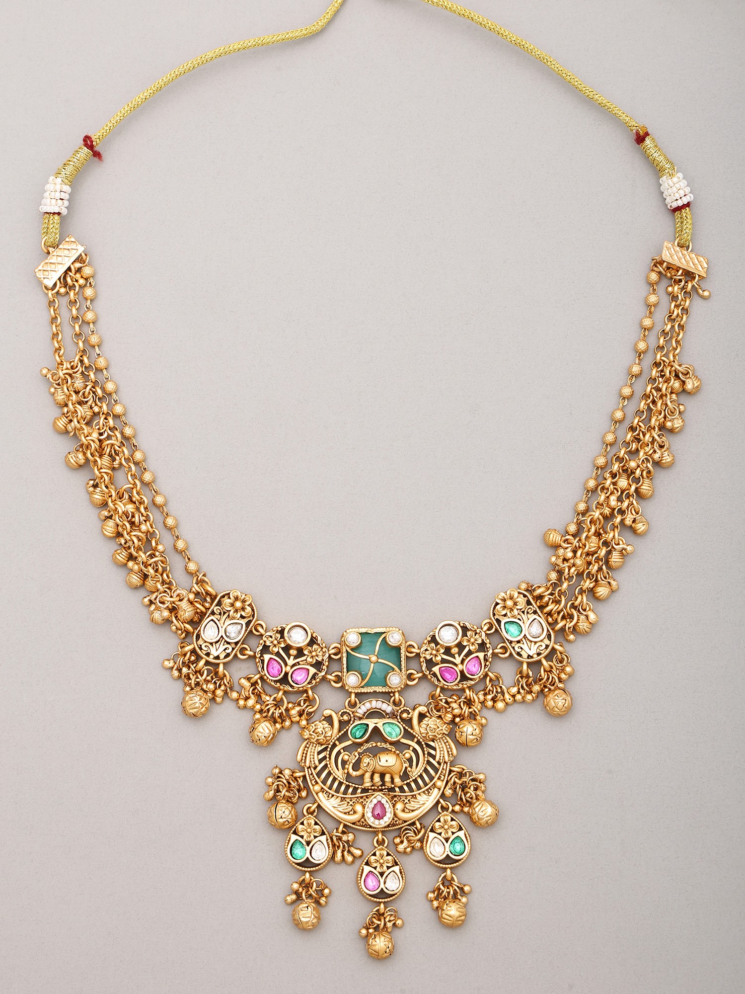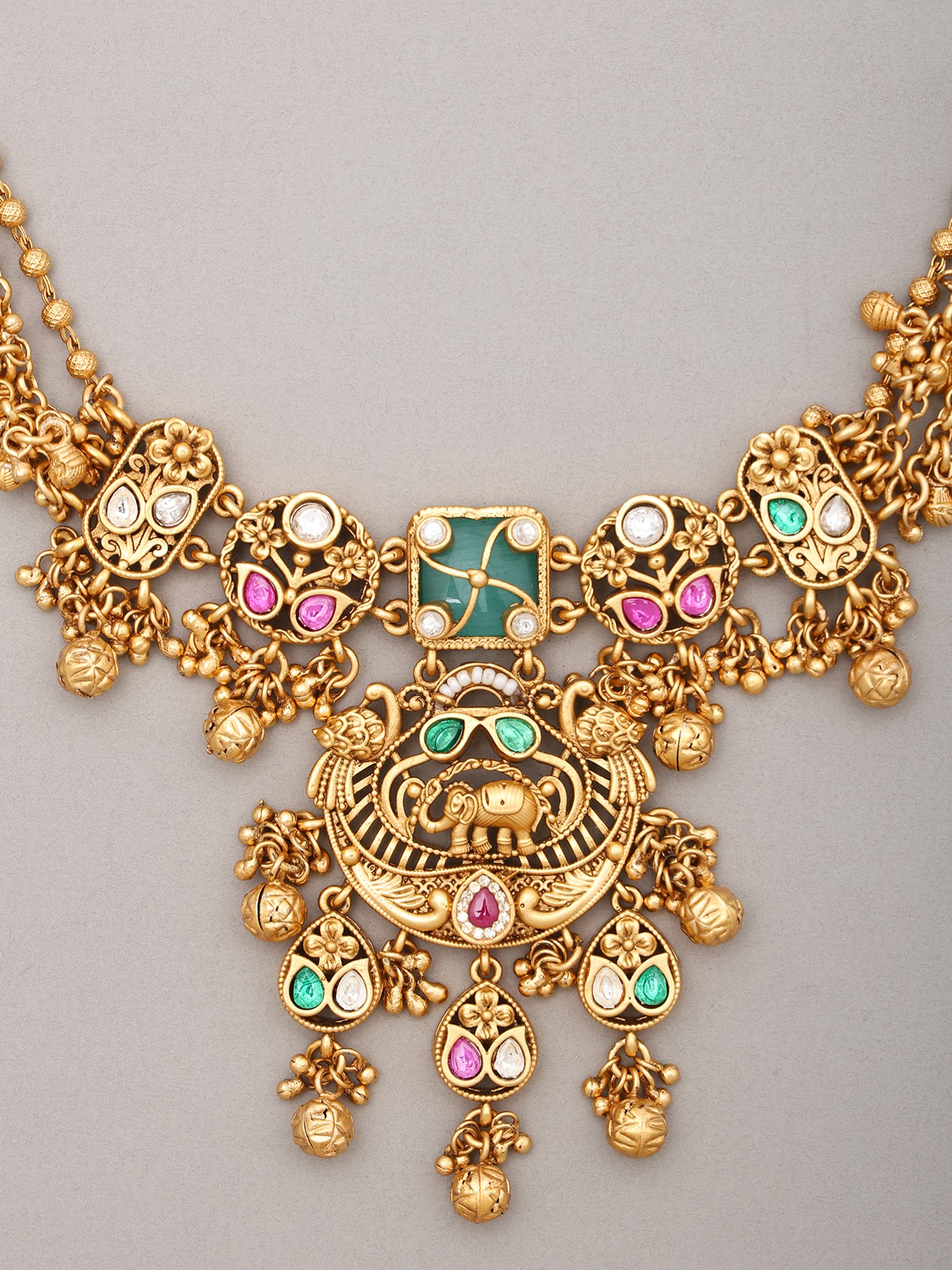 Kundan Stone Studded Elephant Design Necklace Set with Ghungroo Drop