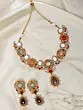 Pink Teardrop Stone Studded Kundan Necklace Set with Earrings