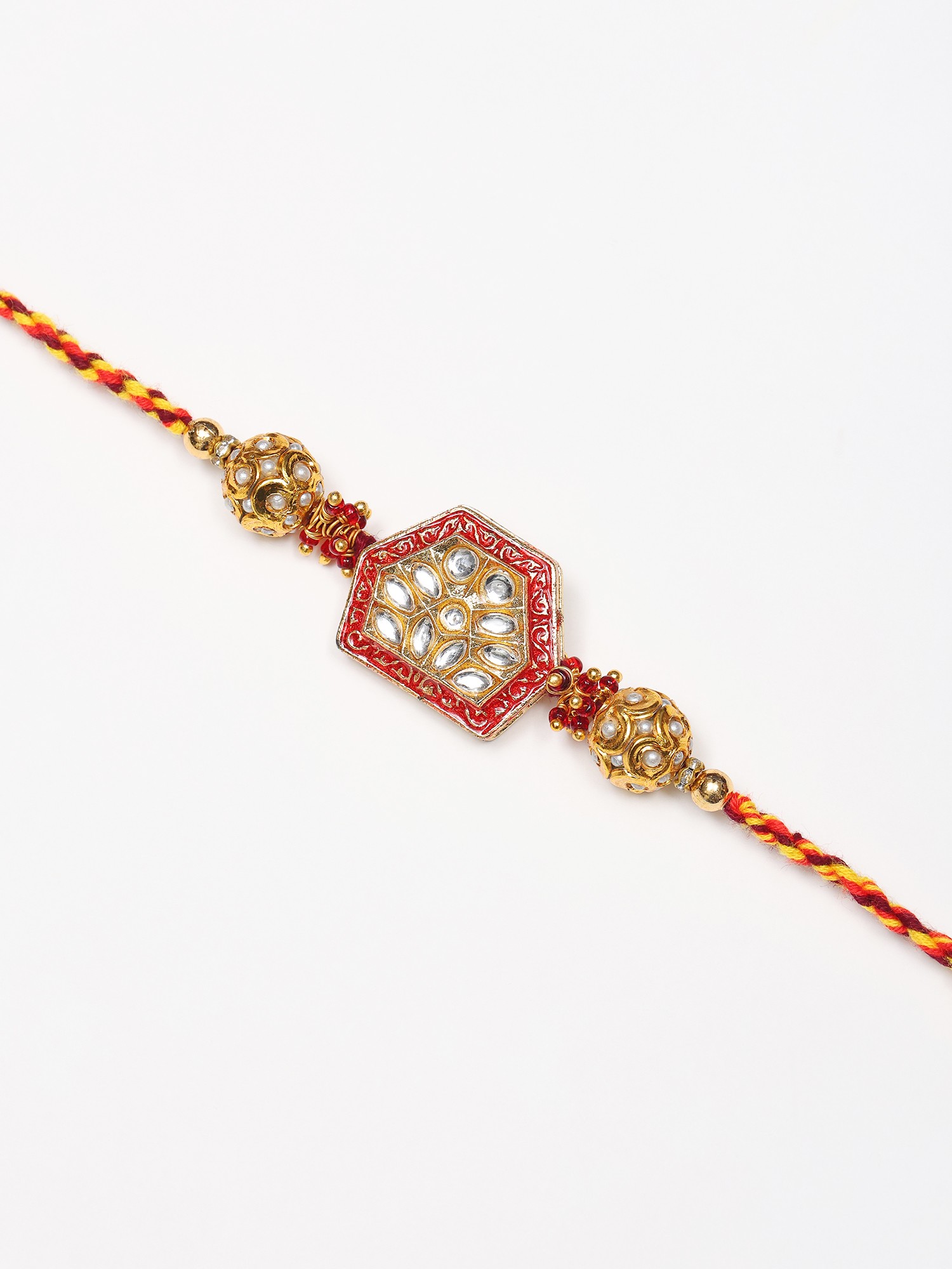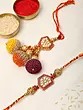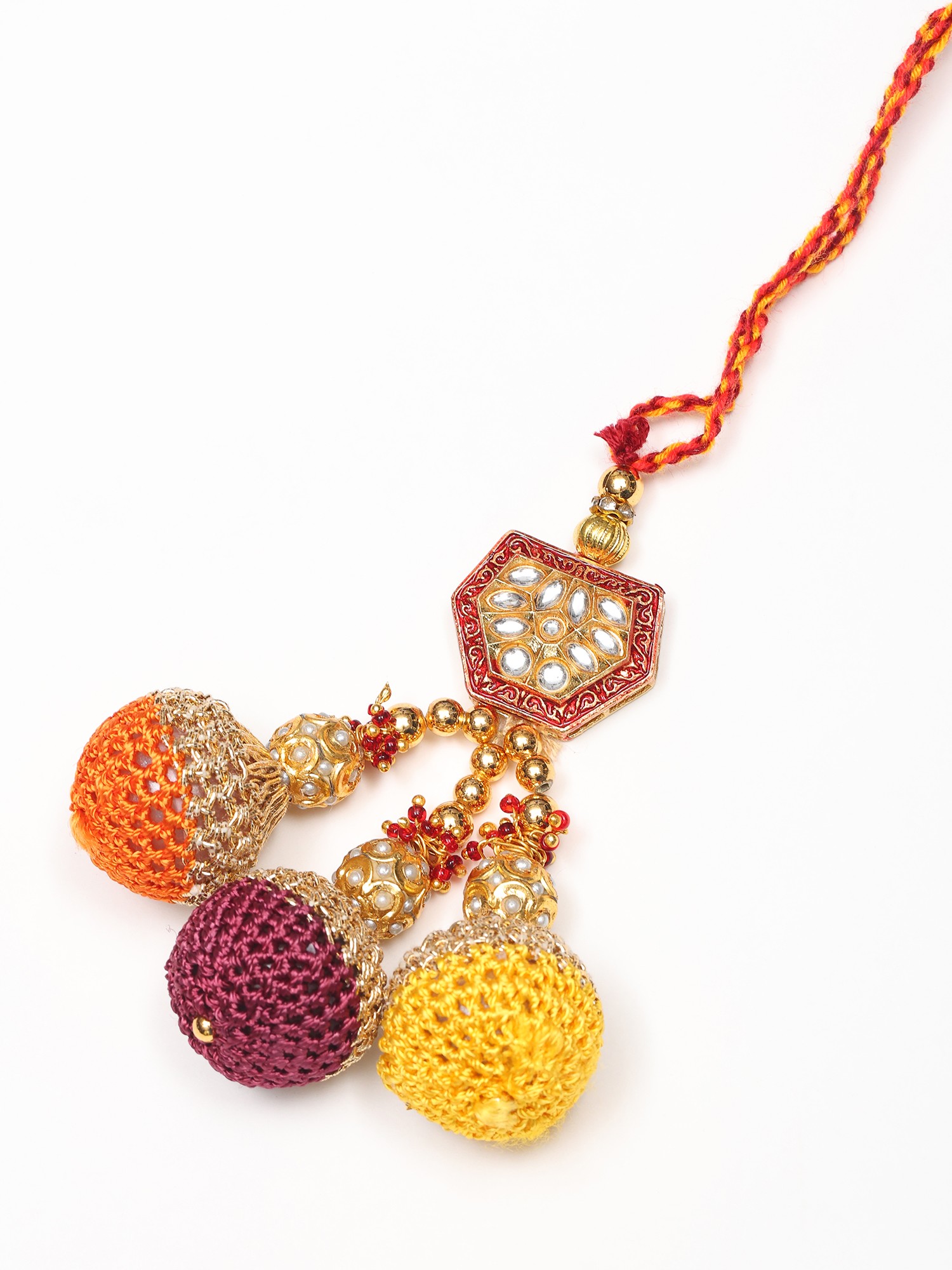 Rakhi Height : 0.75 InchRakhi Length : 14 InchLatkan Length : 3.5 InchLatkan with Thread Length : 9.2 Inch