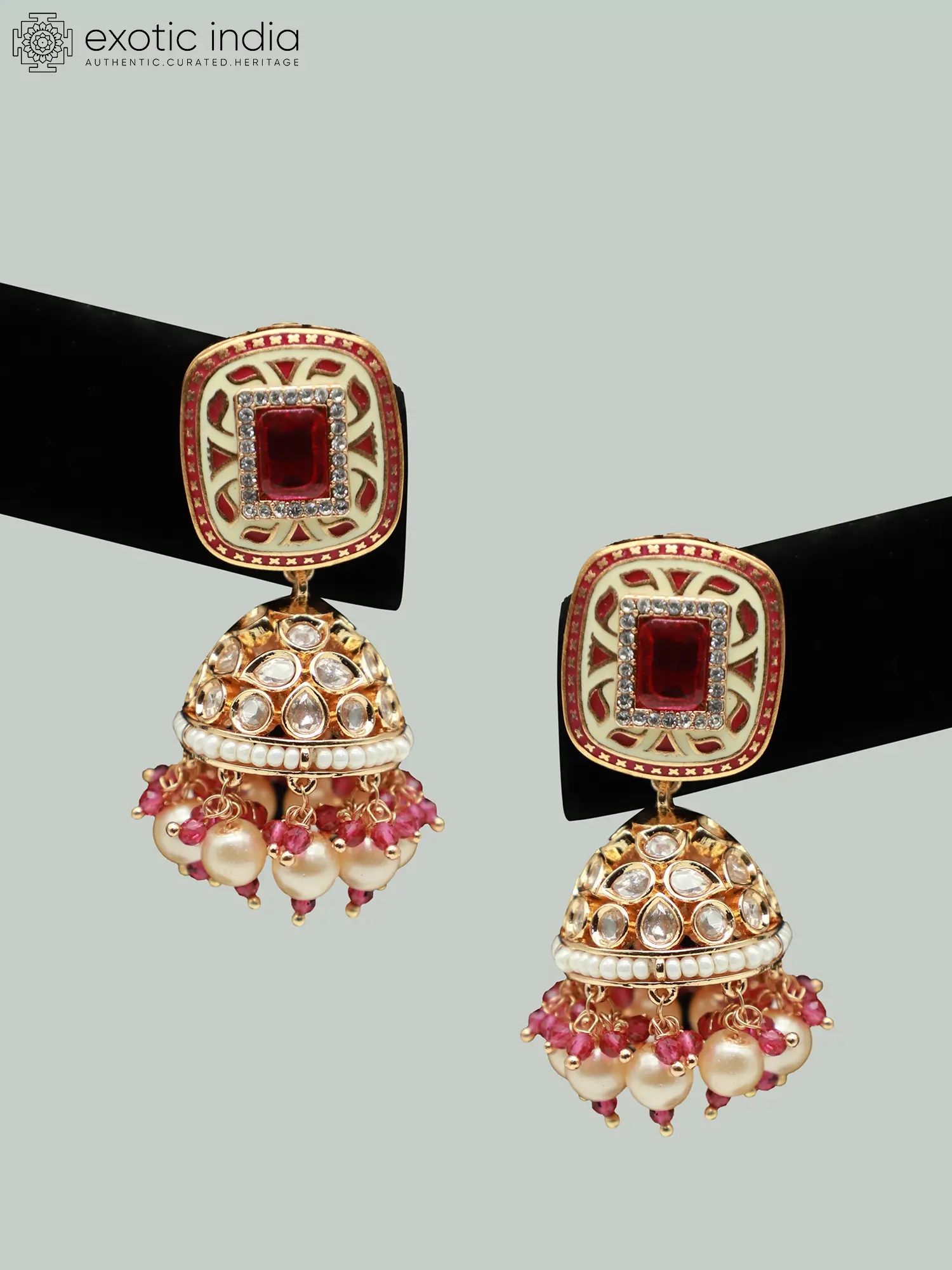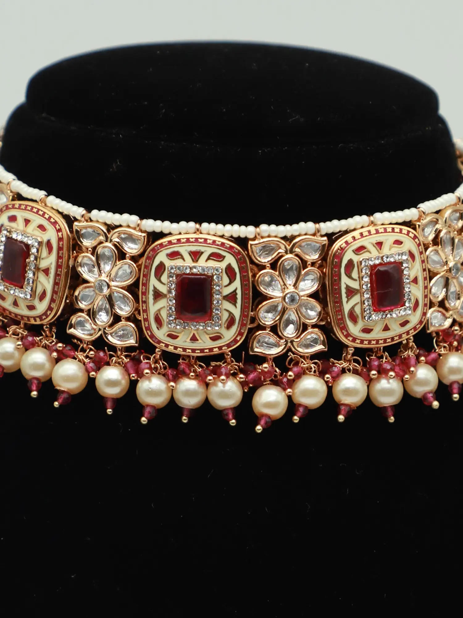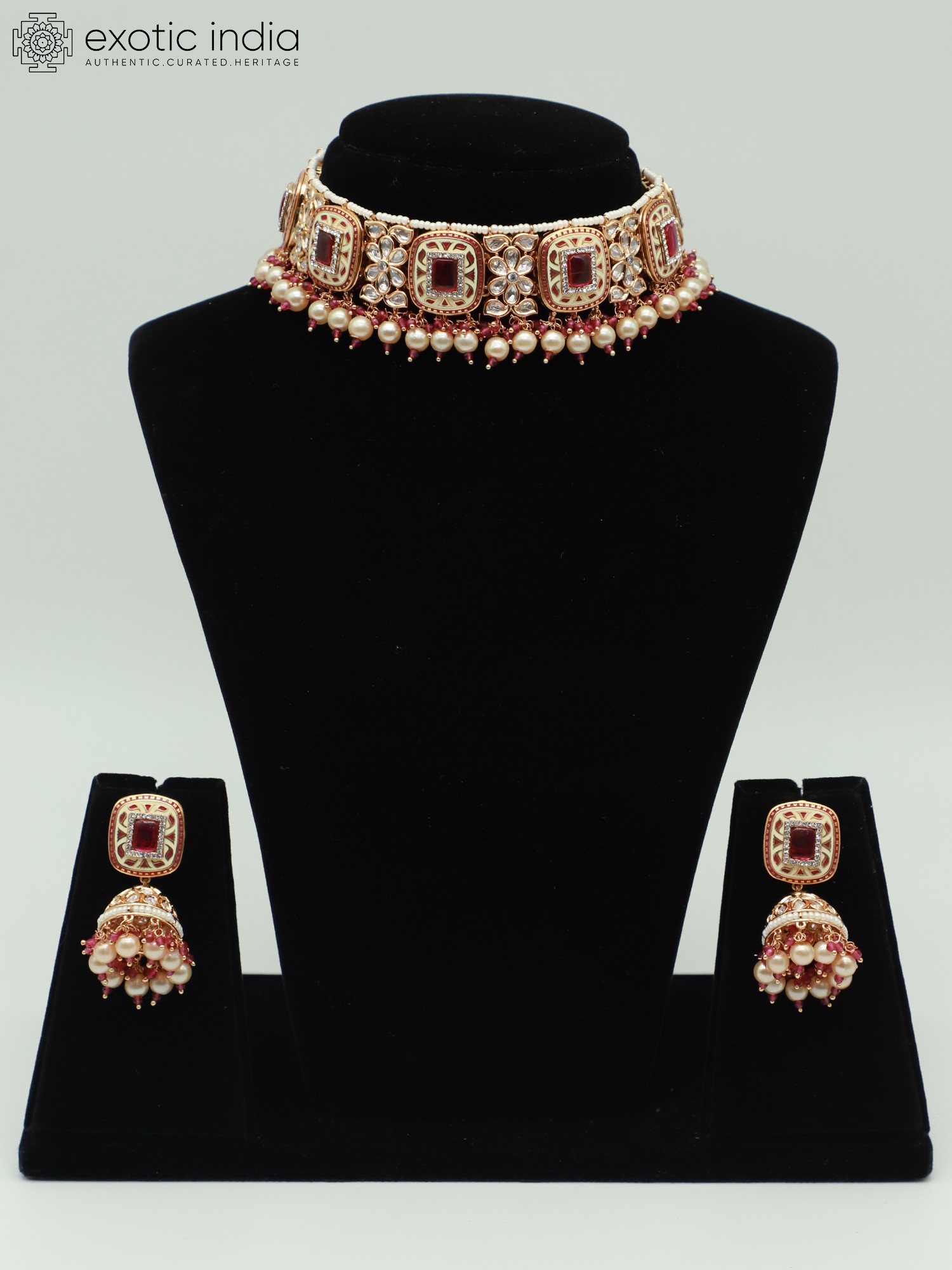 Traditional Meenakari Choker Set And Earrings For Bridal With Kundan And Brass
