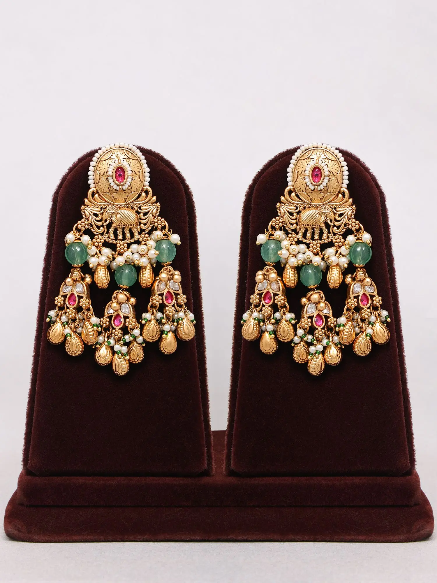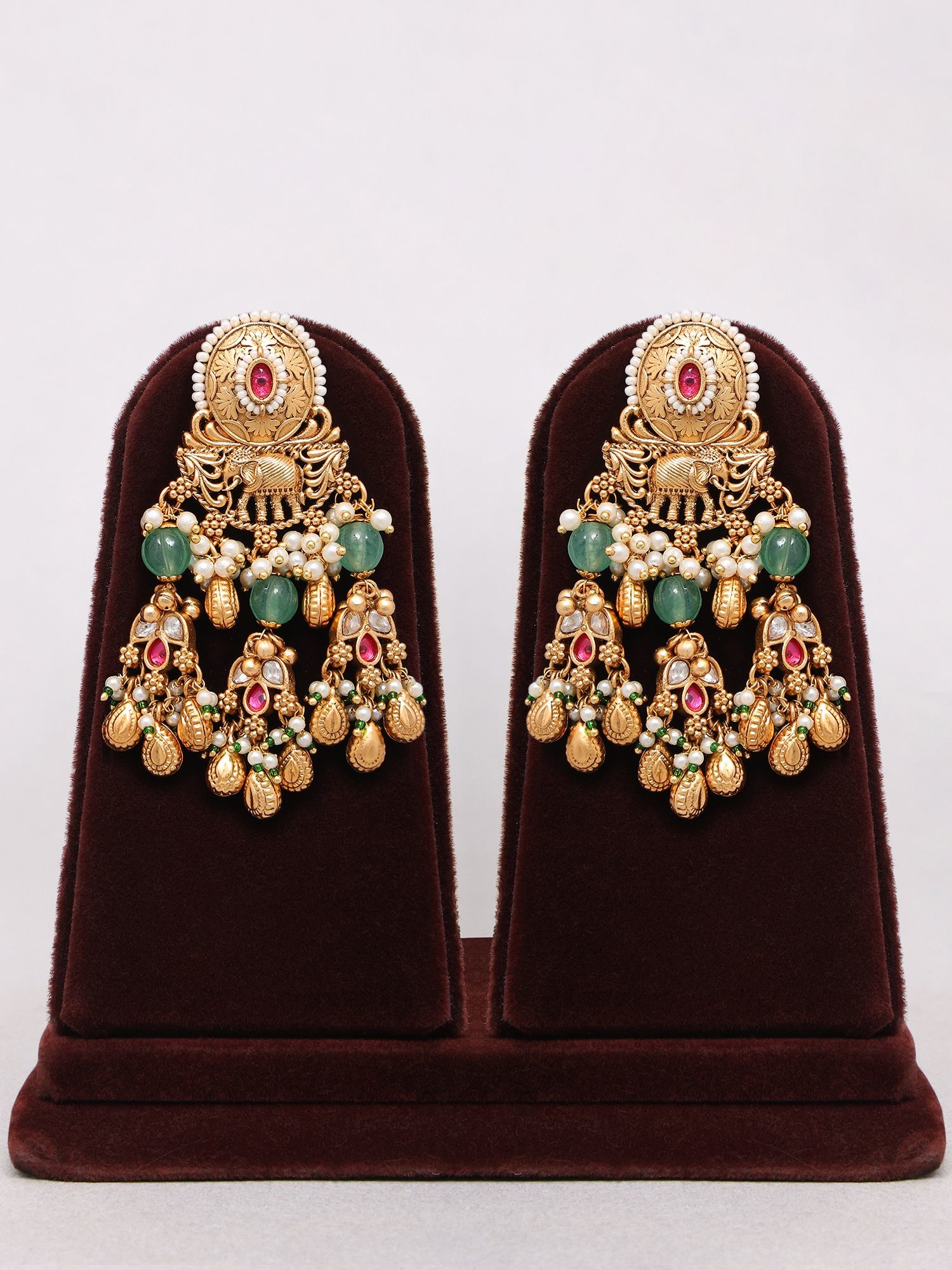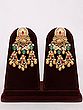 Floral Kundan Earrings with Green Stone and Ghungroo Drops