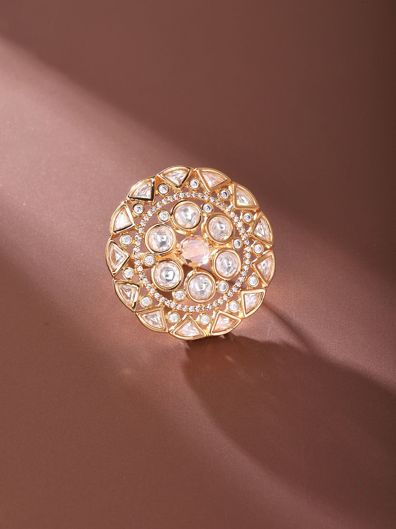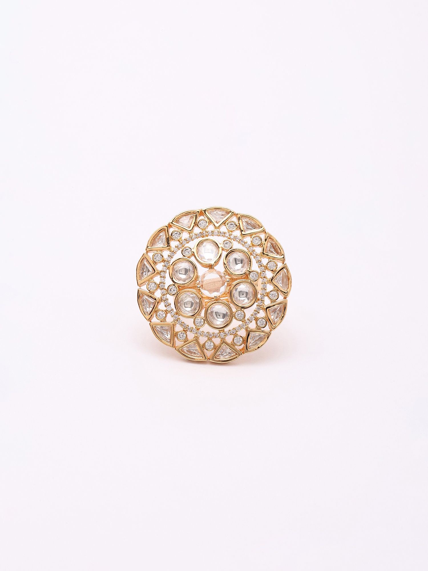 Adjustable Cocktail Ring with Round Kundan Stones