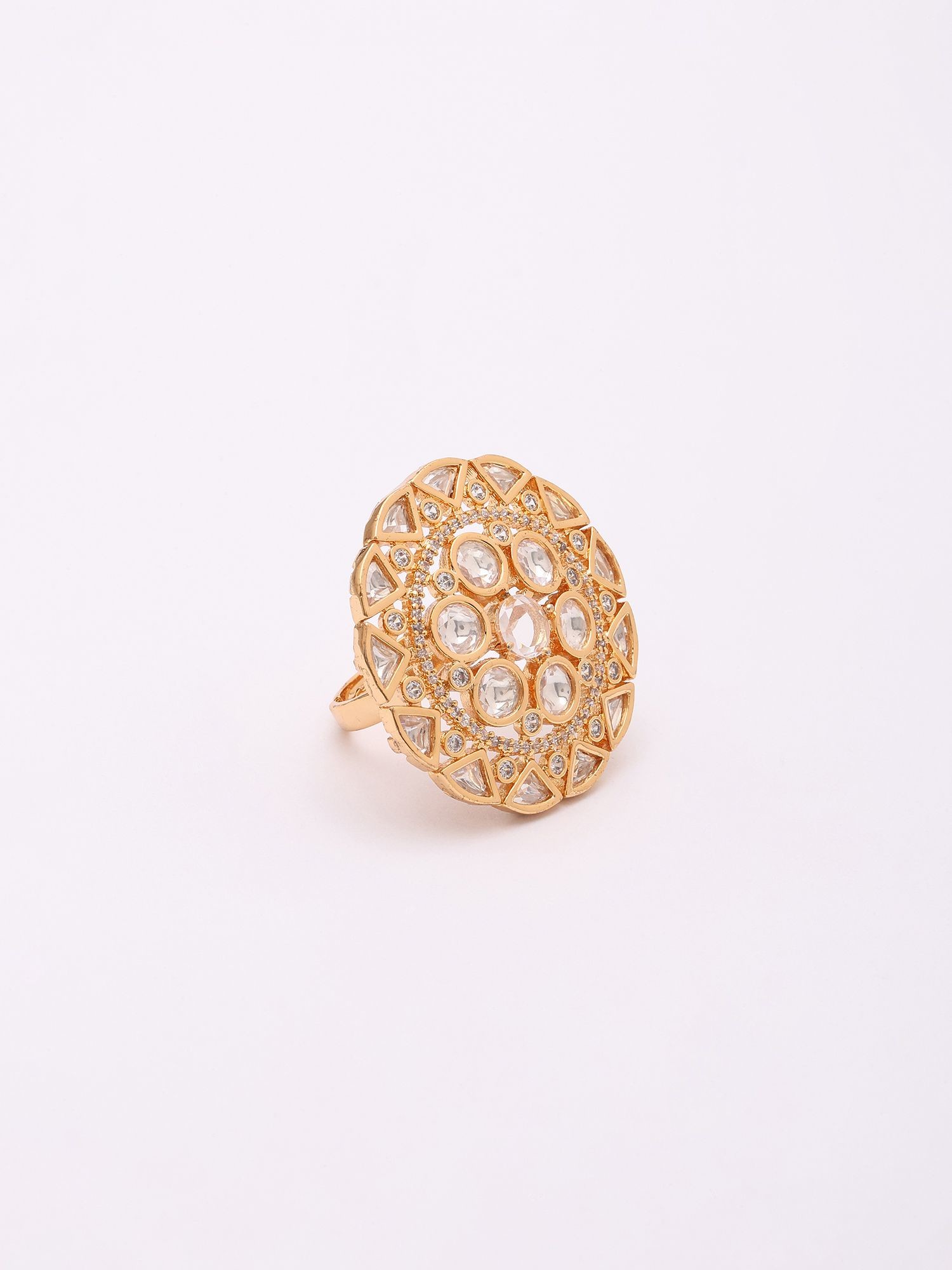 Kundan Style Round Stone Studded Adjustable Ring