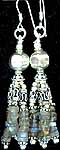 Adorn your ears with these captivating and unique handcrafted earrings. These darlings combine the classic elegance of sterling silver with the alluring, iridescent beauty of natural stone. This piece will bring a touch of ethereal charm to any outfit, effortlessly elevating your look from everyday to extraordinary. The design showcases a delightful interplay of textures and light. Intricate silverwork complements the captivating flashes within the stone, creating a visual dance that's both eye-catching and subtly sophisticated. These earrings are more than just accessories; they're miniature works of art, reflecting the skill and dedication poured into their creation.