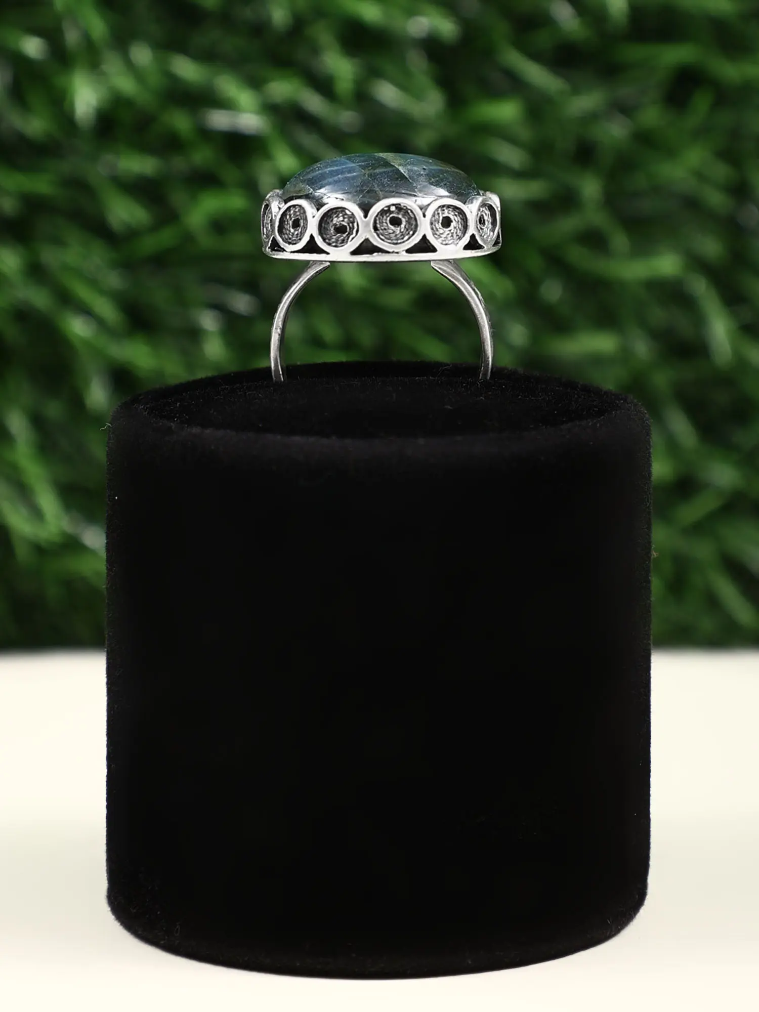 Embrace the mystique of a Labradorite gemstone round-shaped ring. This exquisite piece of jewelry captures the enchanting play of colors within the Labradorite, showcasing its iridescence and unique charm. The round shape of the gemstone adds a classic touch to the design, while the sterling silver or gold setting enhances its elegance. Wear this ring as a statement piece, allowing the Labradorite's natural beauty to captivate with flashes of blue, green, and gold. Perfect for casual and formal occasions, this ring celebrates the earth's wonders, elegantly wrapped around your finger. Revel in the subtle magic that Labradorite brings to your jewelry collection.