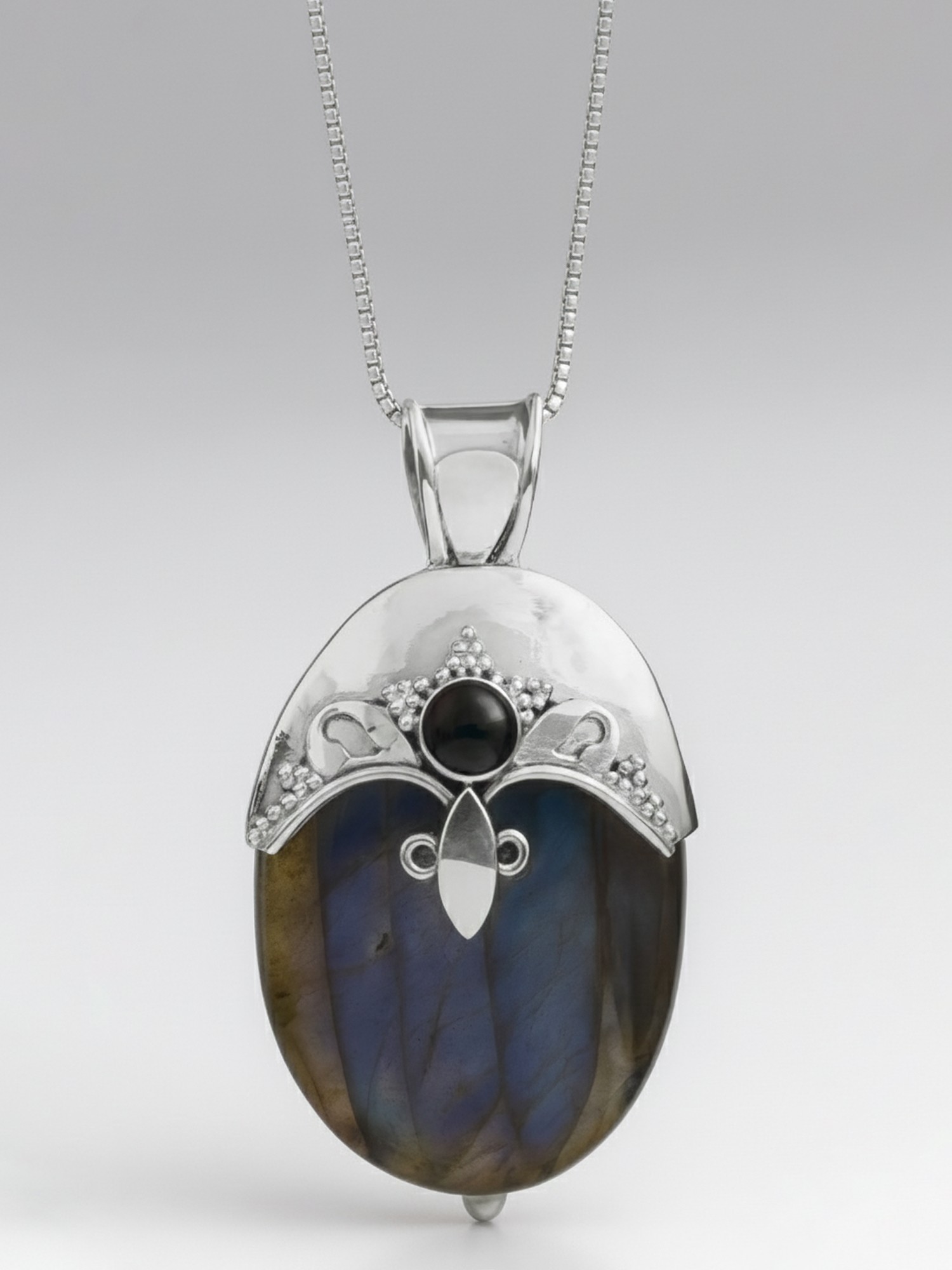Labradorite Oval Pendant with Earrings Set | Indian Jewelry Sets
