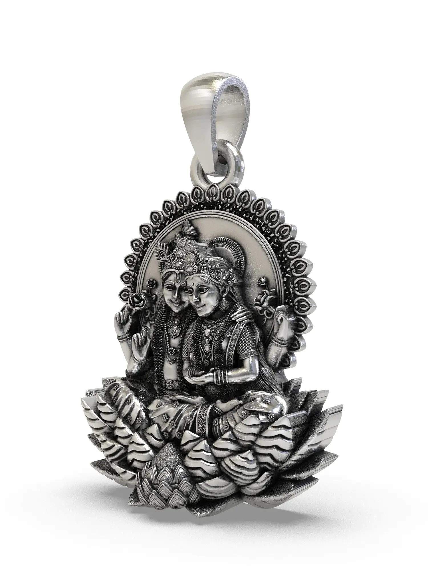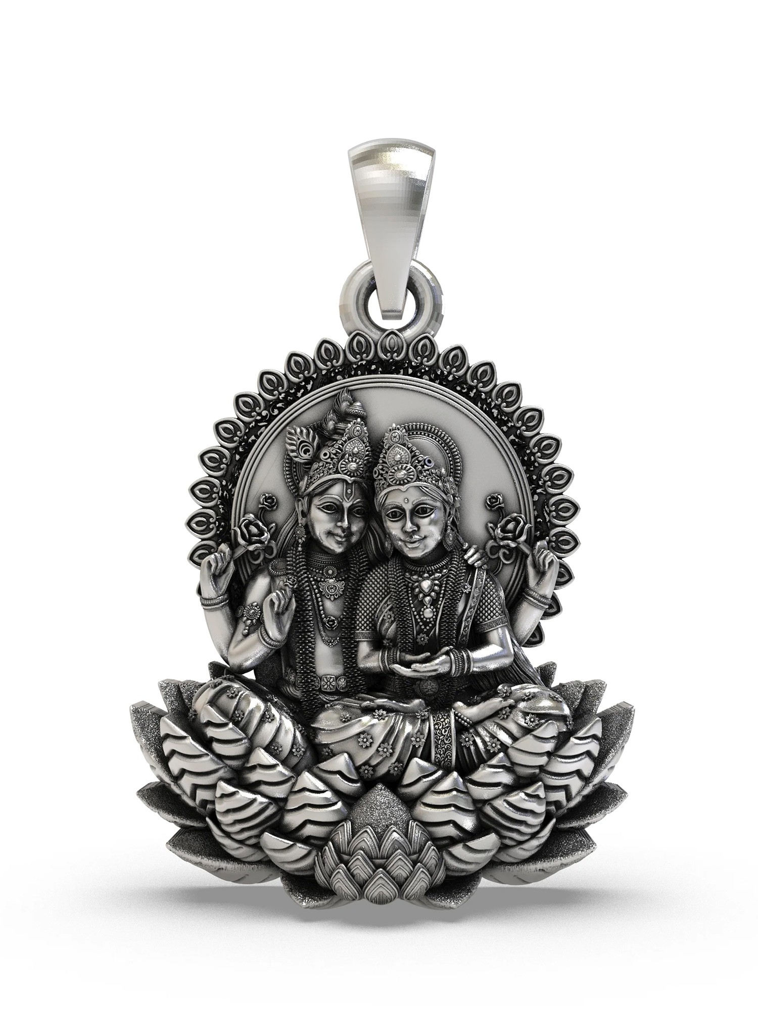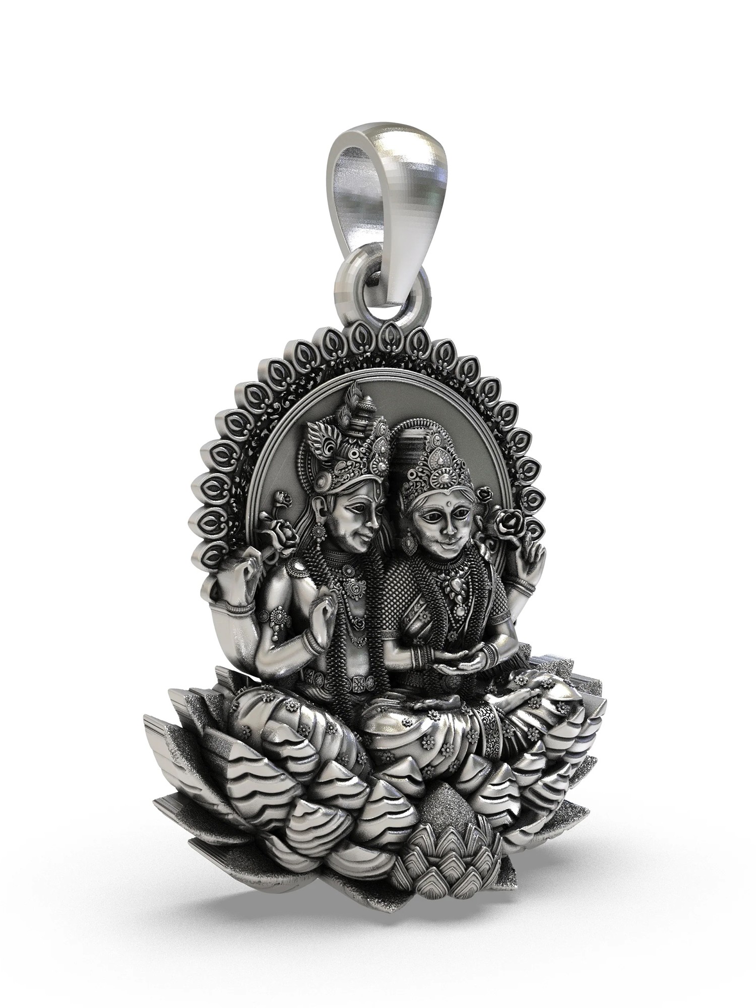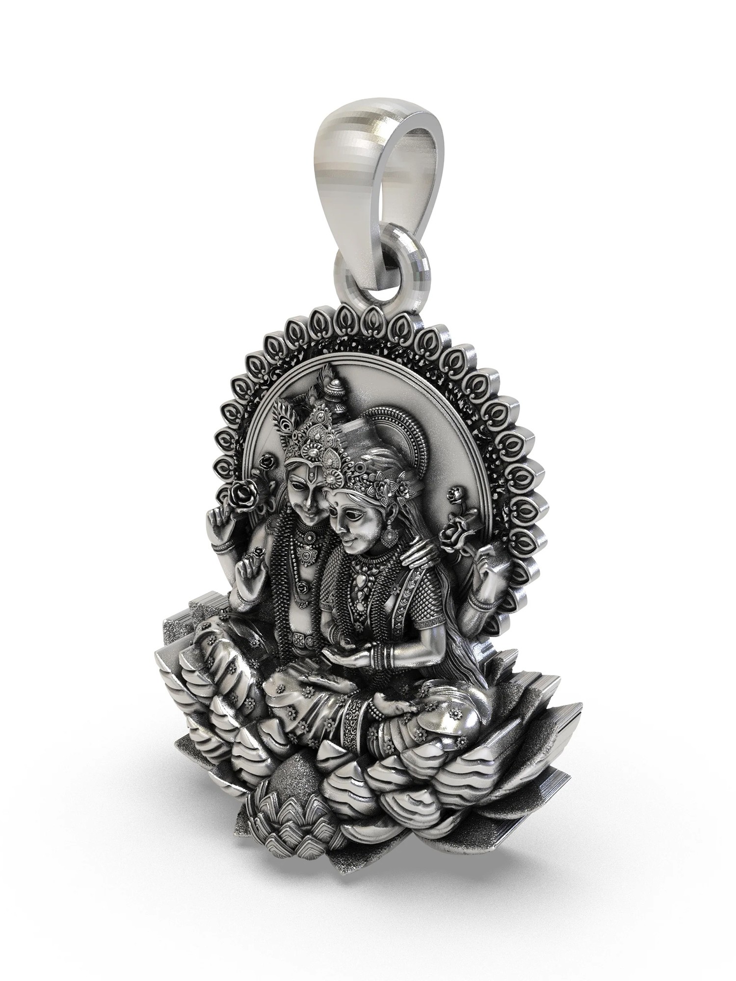 Goddess Mahalakshmi Pendant on Kalash and Lotus Pedestal