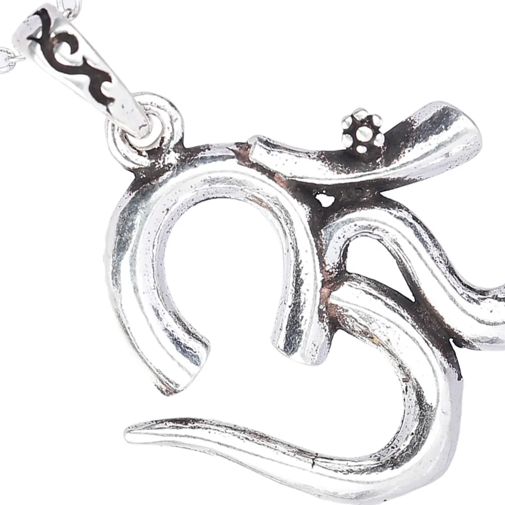 This pendant is meticulously crafted from .925 sterling silver, a precious metal renowned for its lustrous shine, durability, and hypoallergenic properties. The sterling silver lends a substantial feel and a cool, elegant sheen that complements any skin tone. The intricate detailing and the subtle oxidized accents within the curves of the Om symbol add depth and visual interest, highlighting the skilled craftsmanship involved in its creation. This pendant is designed to be a cherished piece in your jewelry collection for years to come, retaining its beauty and spiritual resonance.