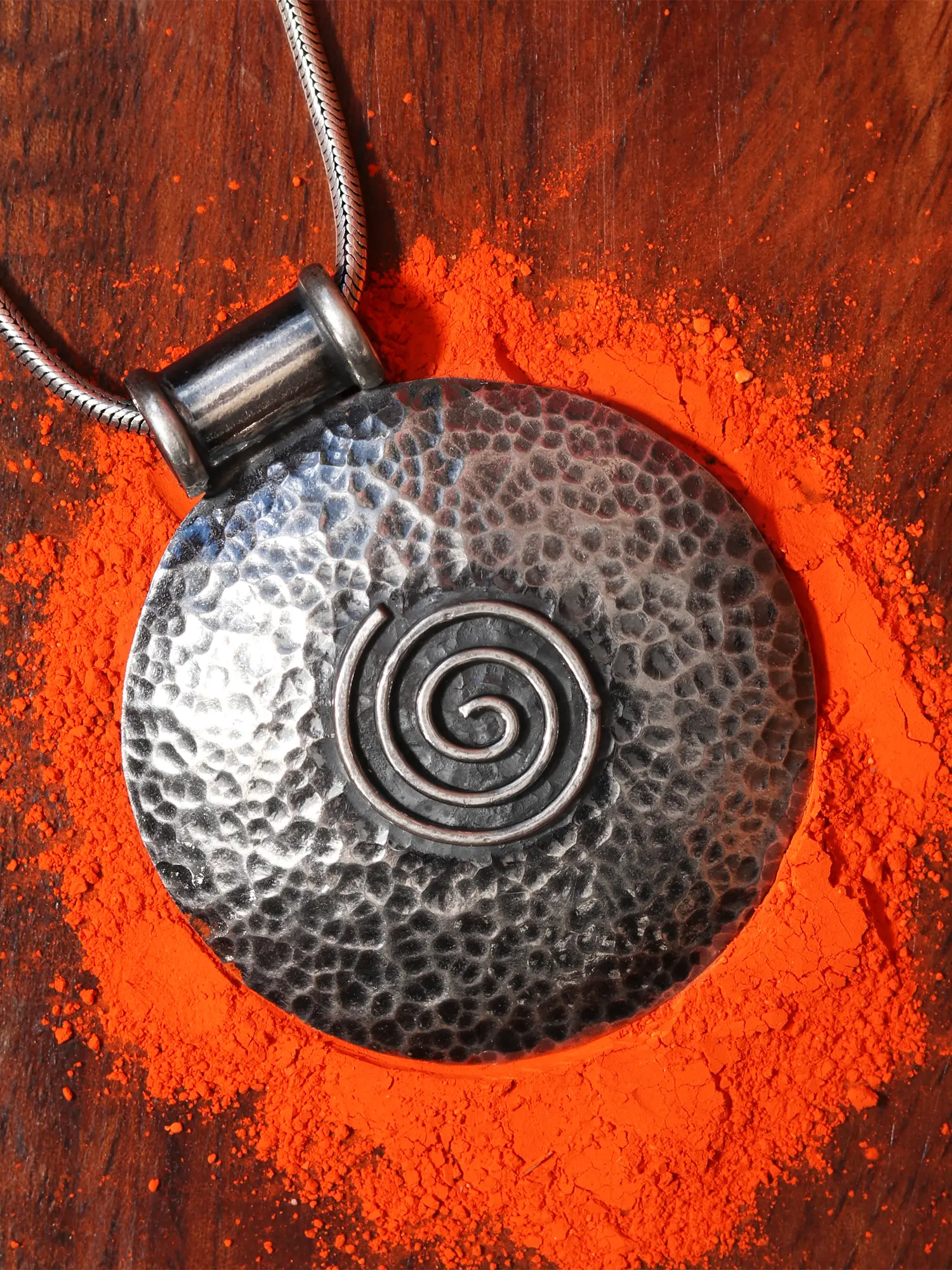 Discover a piece that resonates with your spiritual journey. This exquisite pendant, crafted from lustrous sterling silver, offers a tangible connection to the universal flow of energy. The hammered, textured surface of the round pendant evokes a sense of ancient craftsmanship, while the central spiral design is a powerful symbol of growth, evolution, and the interconnectedness of all things.