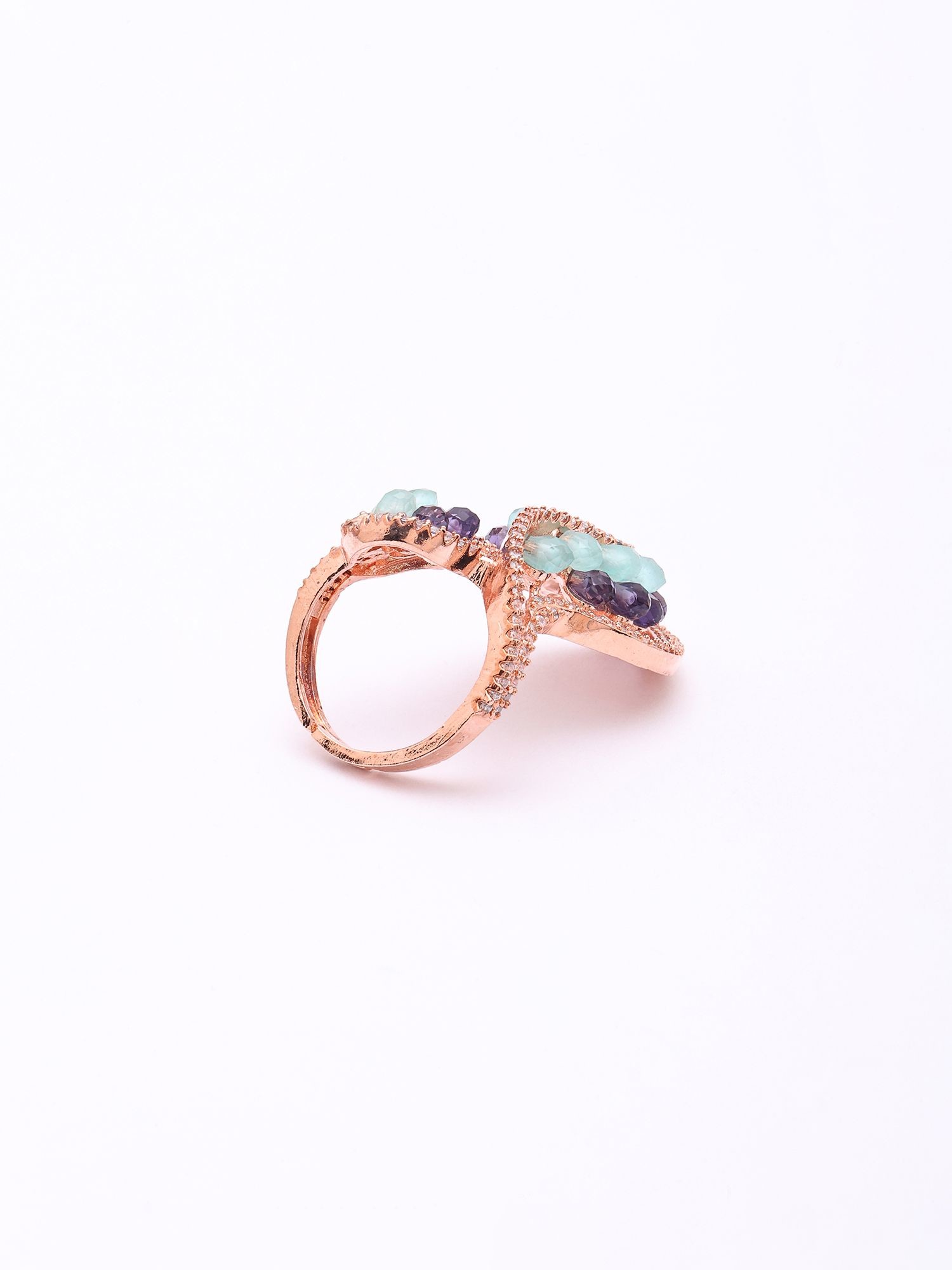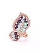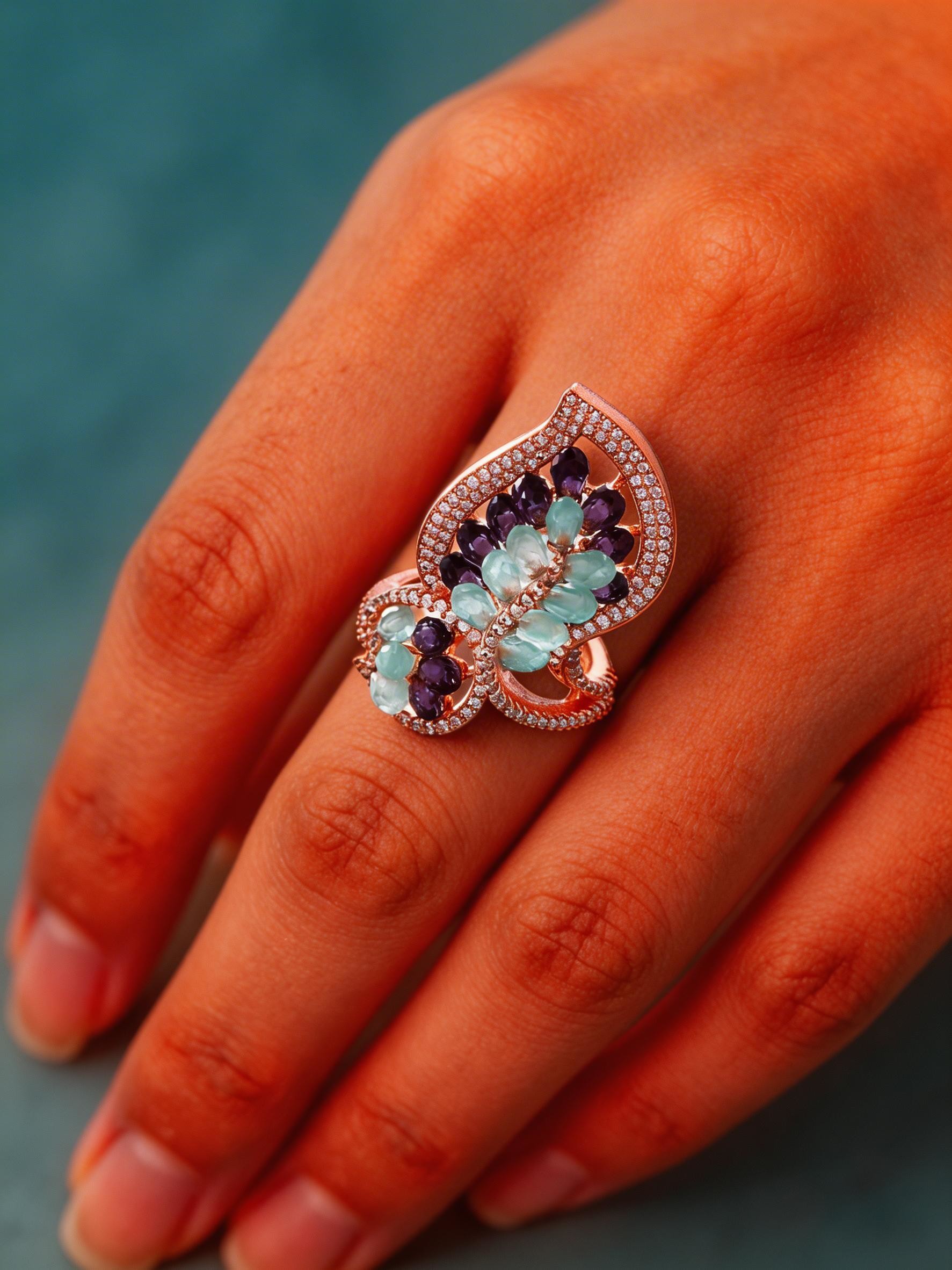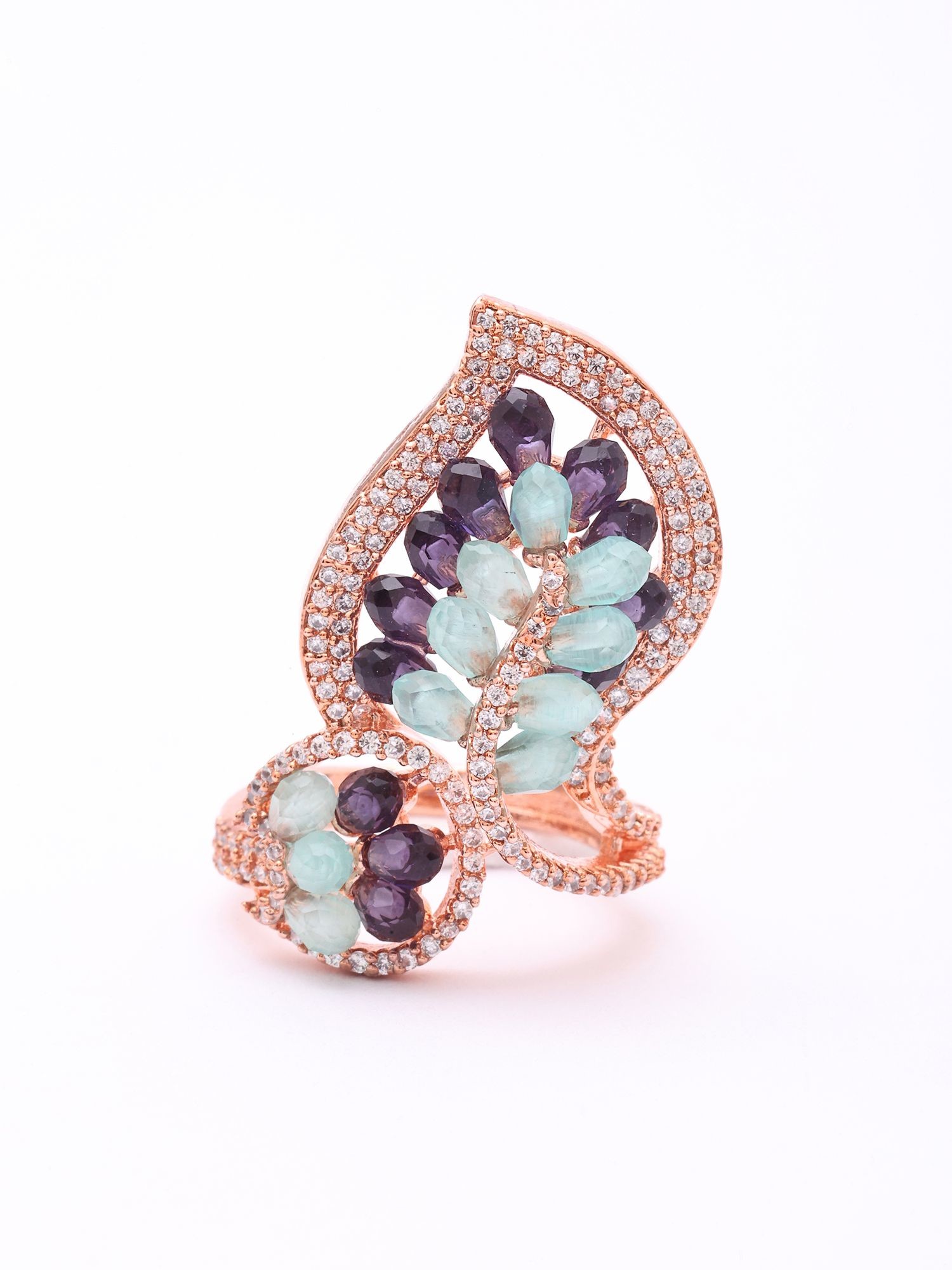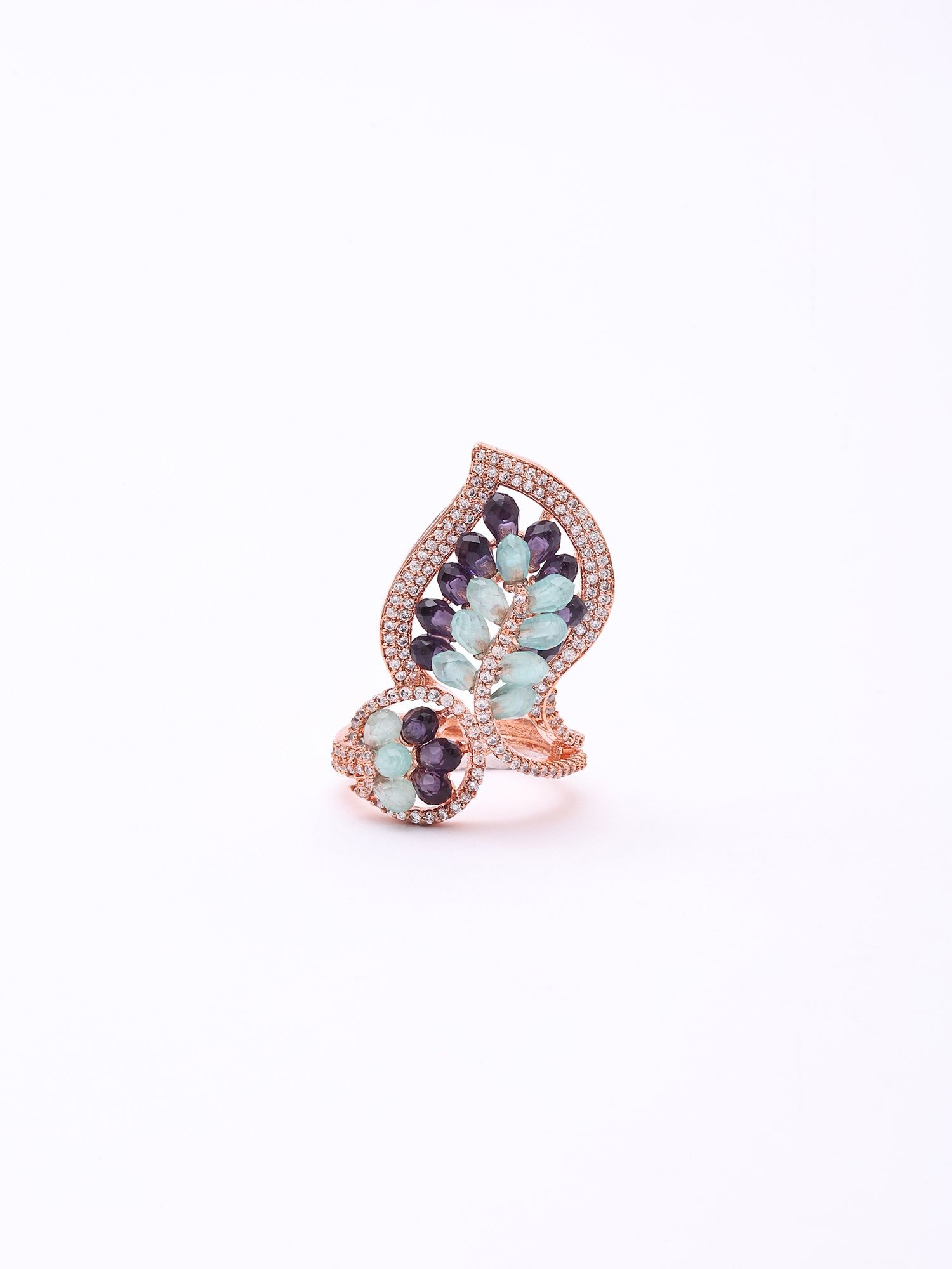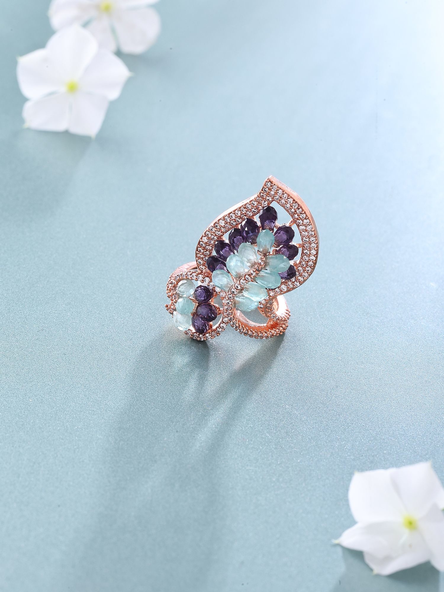 Leaf Design American-Diamond Adjustable Ring with Blue and Violet Stone