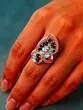 Pink Stone Studded Adjustable American-Diamond Statement Ring