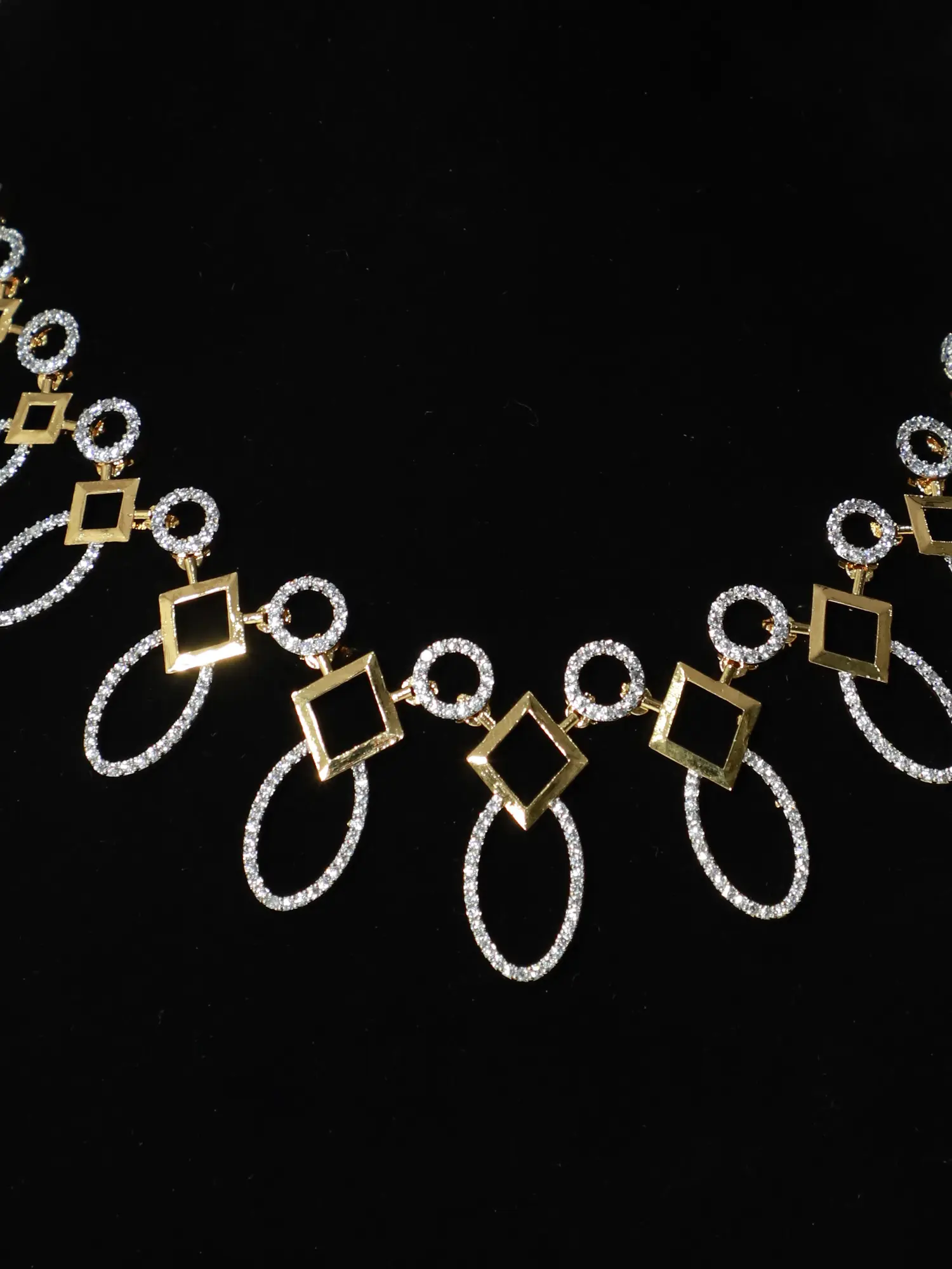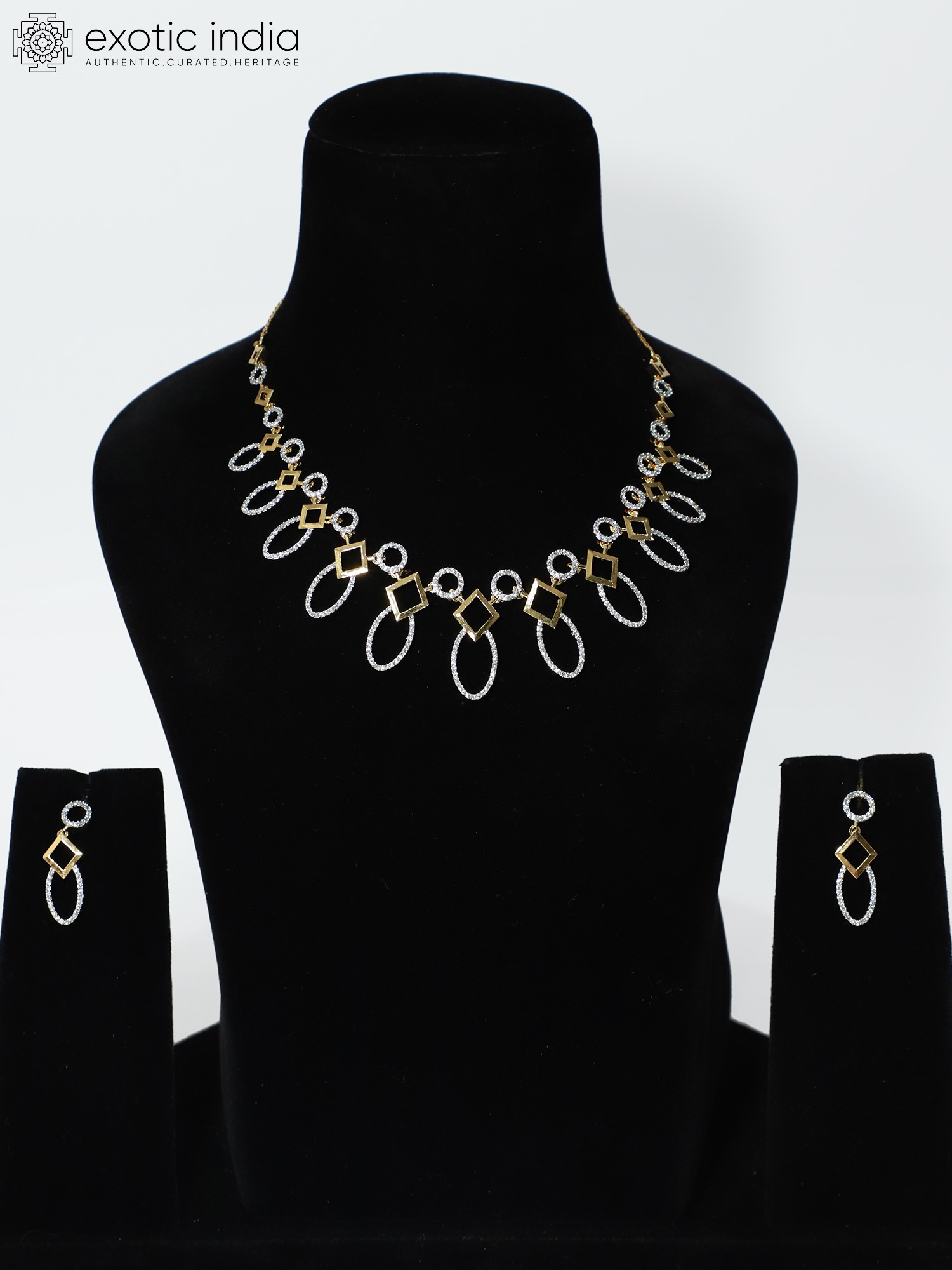 Beautiful Floral Leaf Design Exquisite Stone Studded American Diamond Necklace Set With Earrings