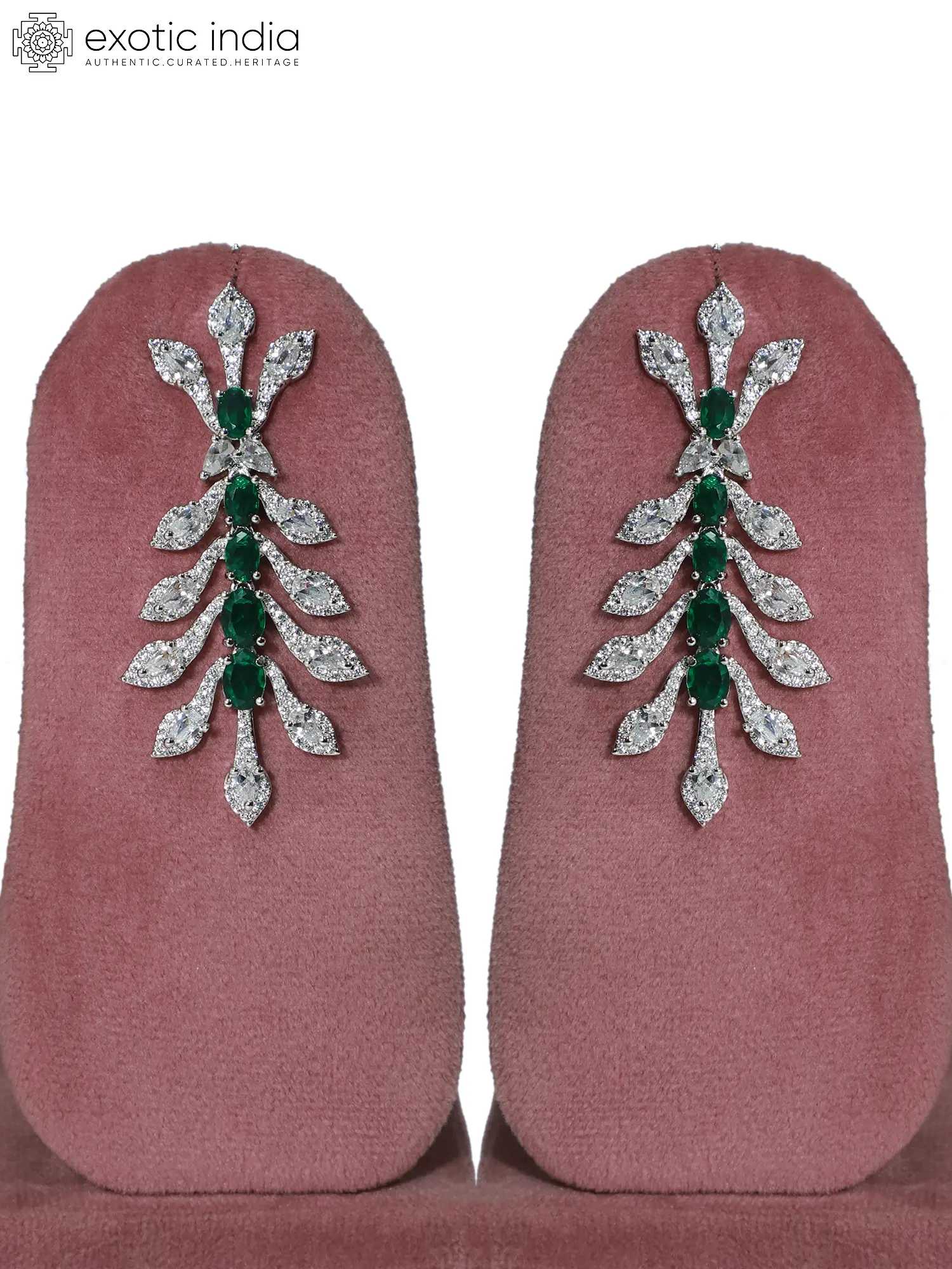 Exquisite Silver Tone Leaf Design American Diamond Necklace Set With Earrings