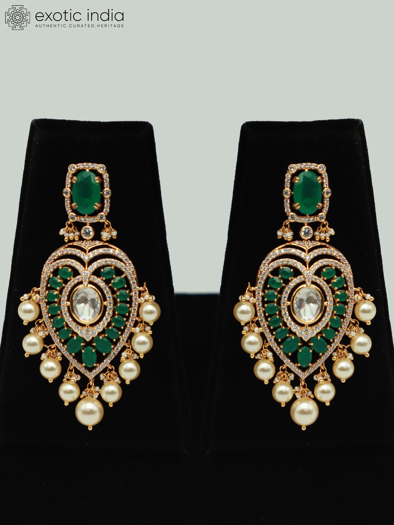 Designer Heavy Necklace Set With Moissanite Kundan And Earrings