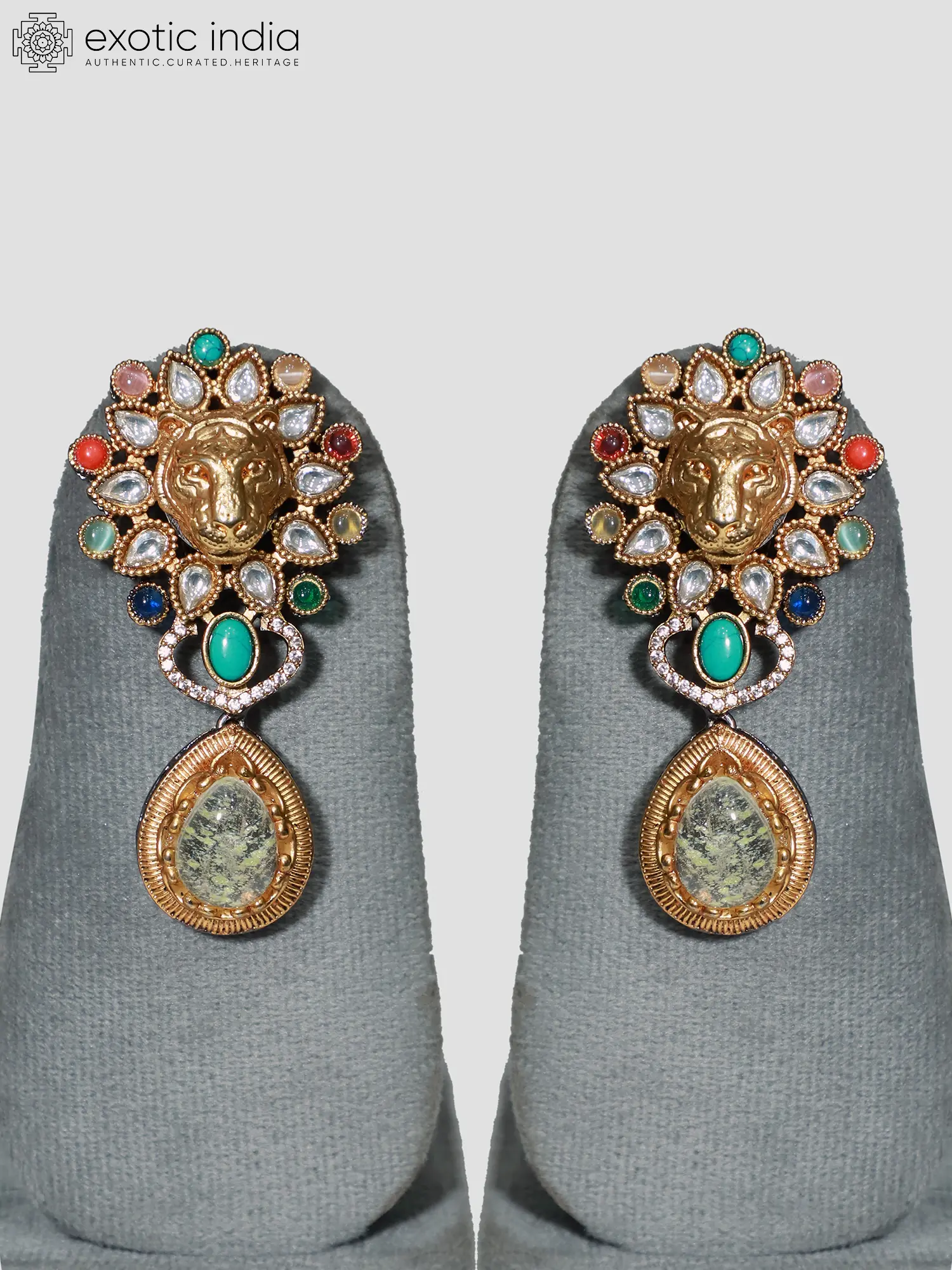 Lion Face Stone Studded Designer Jewelry Set With Earrings