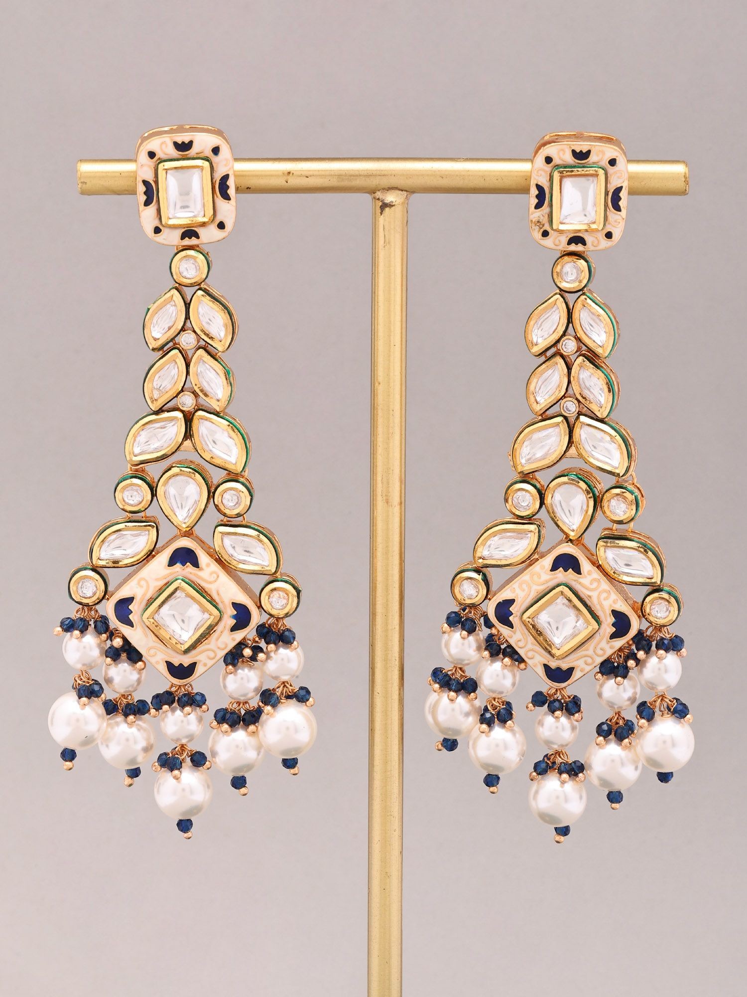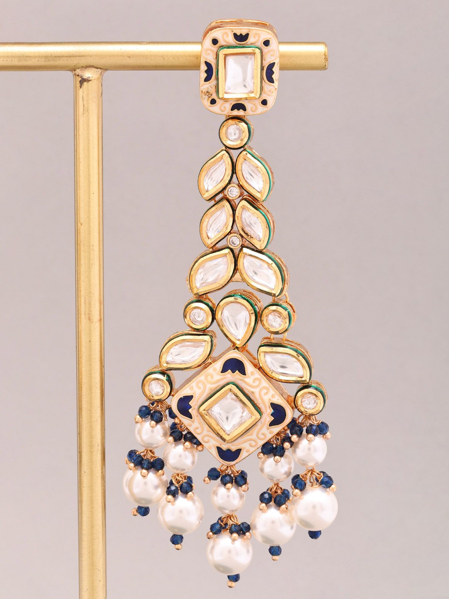 Statement Kundan Earrings with Cascading Blue Beads