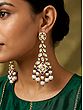 Antique Gold Finish Kundan Chandelier Earrings with Pearl Drops
