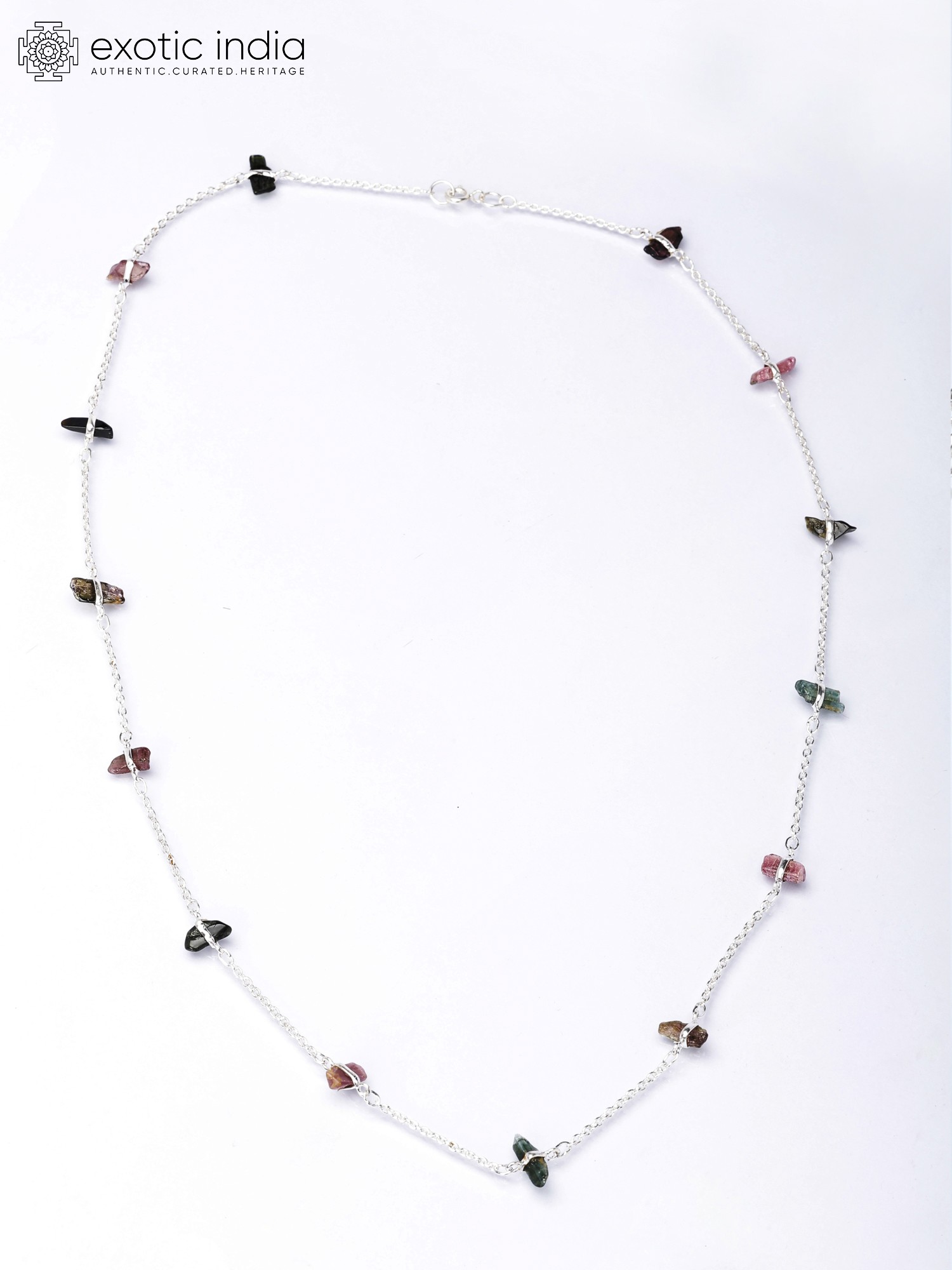 The necklace is meticulously crafted using high-quality sterling silver, known for its durability and lustrous shine. The silver chain provides a perfect complement to the vibrant Tourmaline chips, allowing the gemstones to truly take center stage. The secure clasp ensures comfortable and worry-free wear, so you can move freely and confidently throughout your day. The simple yet elegant design makes it a versatile piece, easy to pair with any outfit.