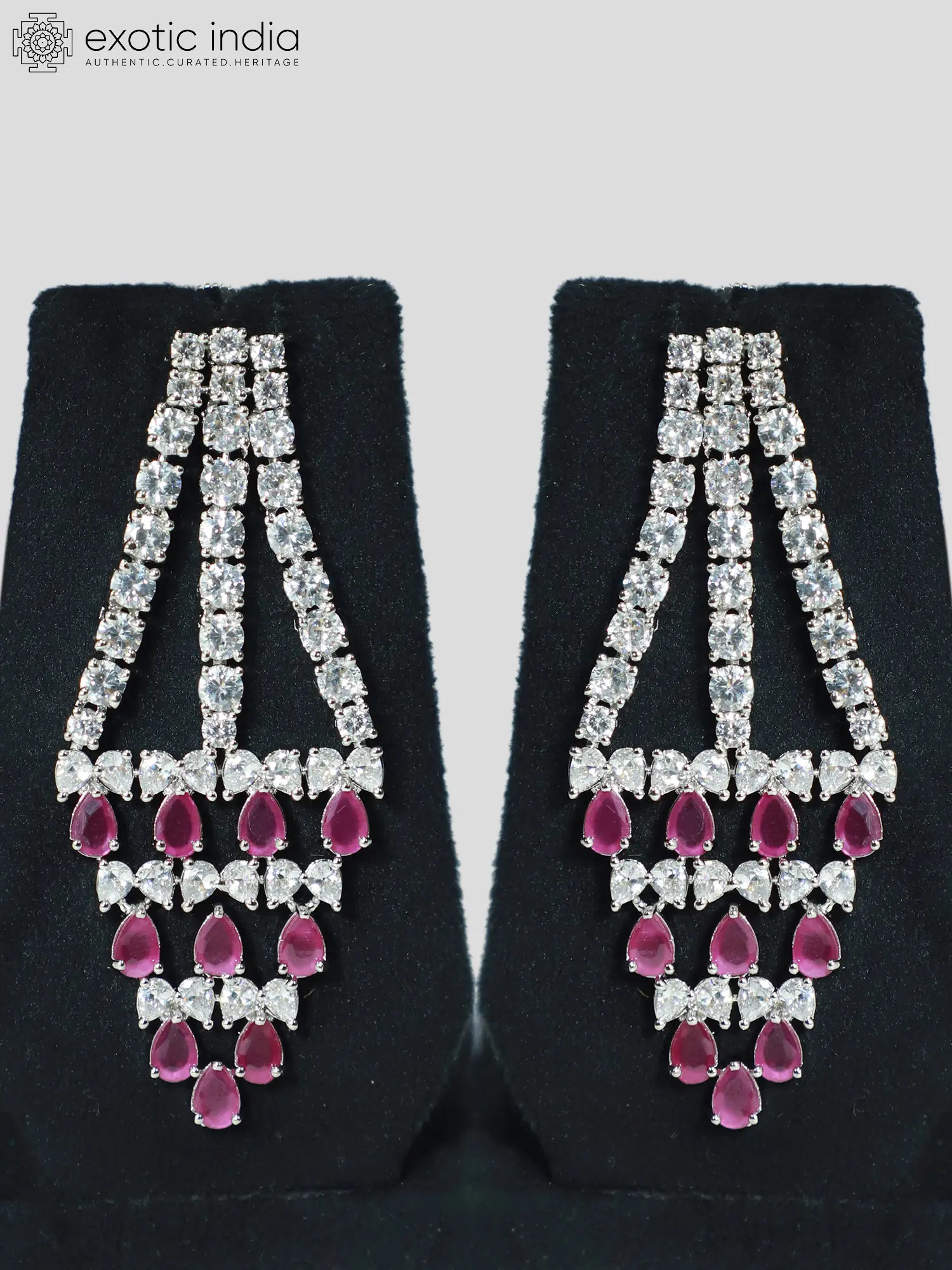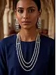 Long Triple Layered Stone Studded Beautiful American Diamond Necklace Set With Earrings