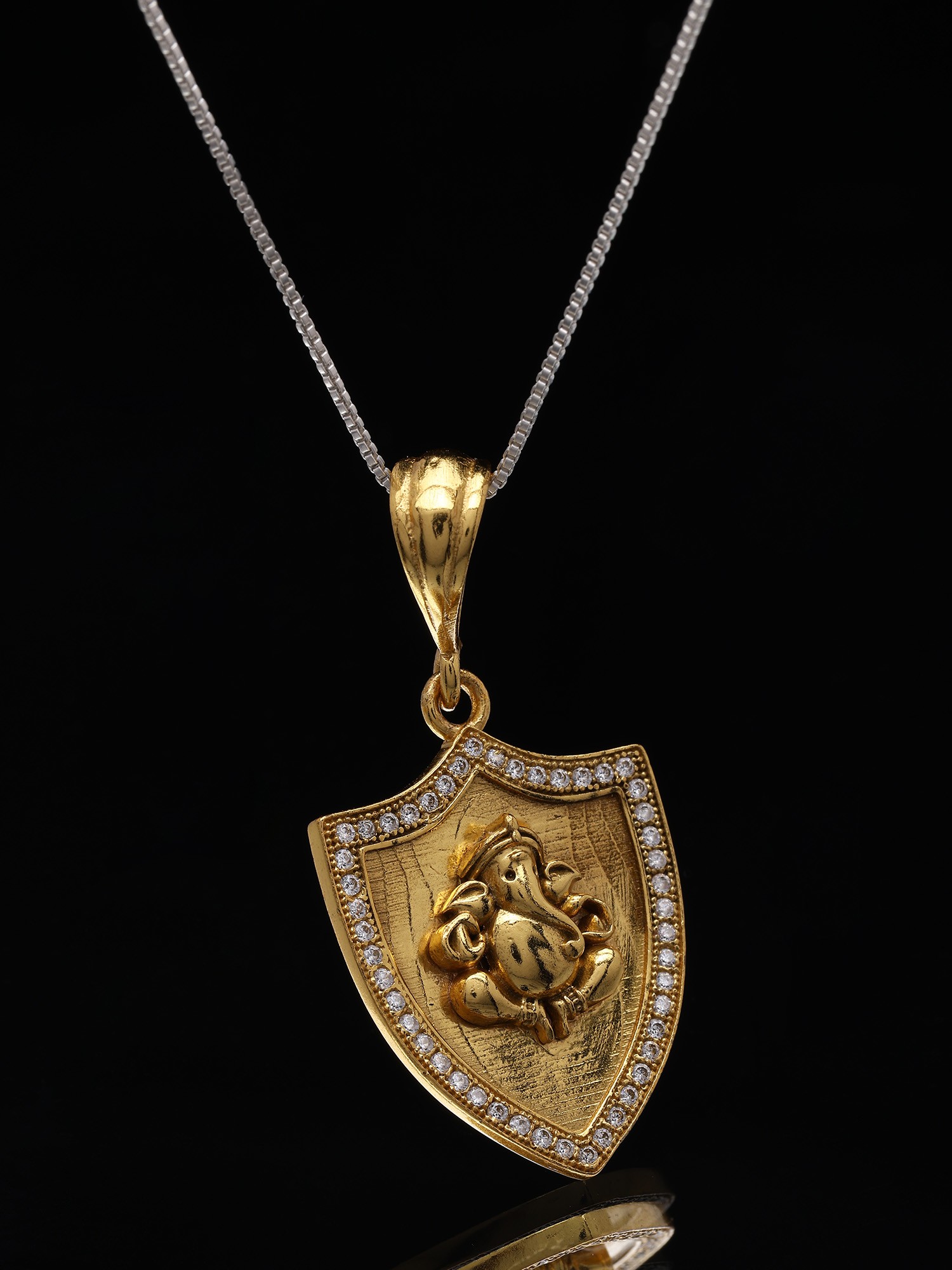 Carry the blessings of wisdom and prosperity with you always. This exquisitely crafted pendant features an image of Lord Ganesha, the remover of obstacles and the harbinger of good fortune. More than just a beautiful piece of jewelry, this pendant is a powerful symbol of faith, knowledge, and new beginnings. Crafted with meticulous attention to detail, Ganesha's iconic form is rendered with clarity and grace. The gentle curves of his trunk, the intricate carvings of his headdress, and the serene expression on his face are all captured in stunning relief, making this pendant a miniature work of art.