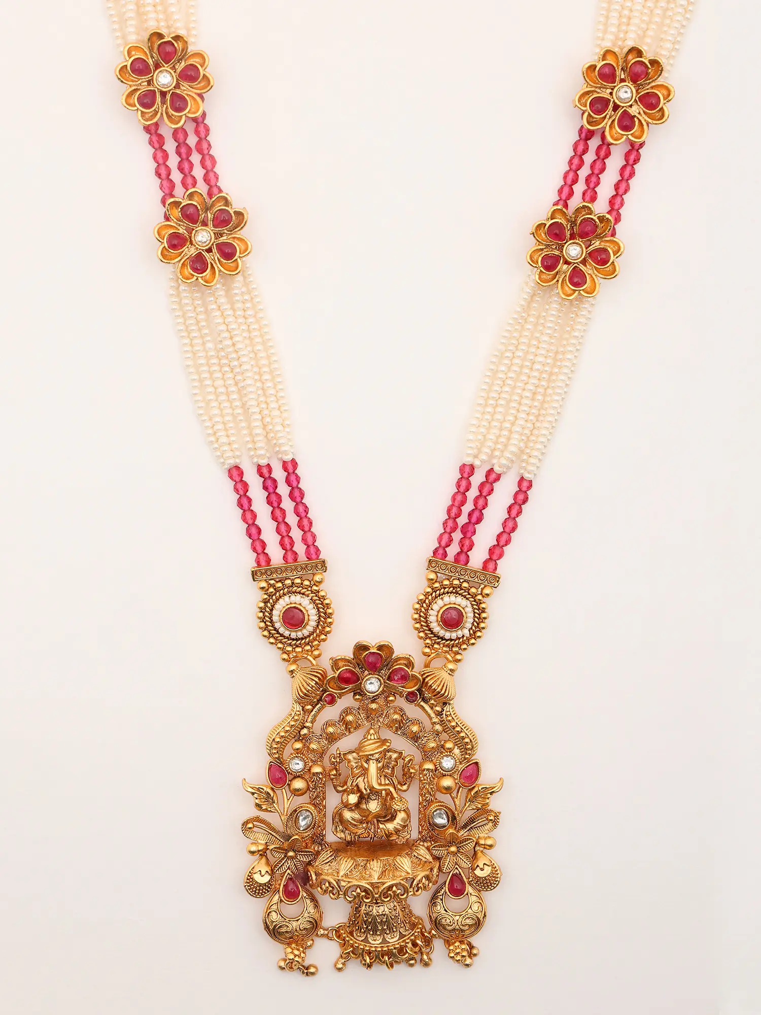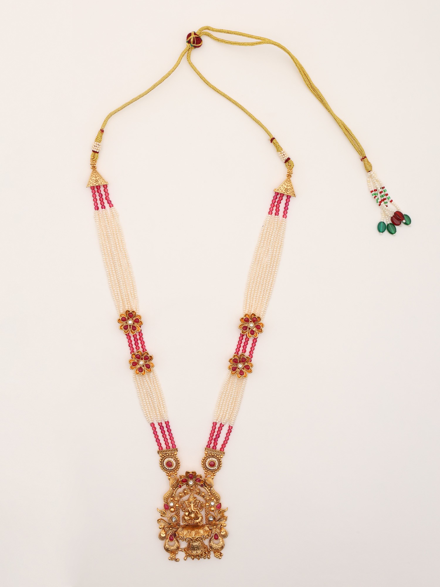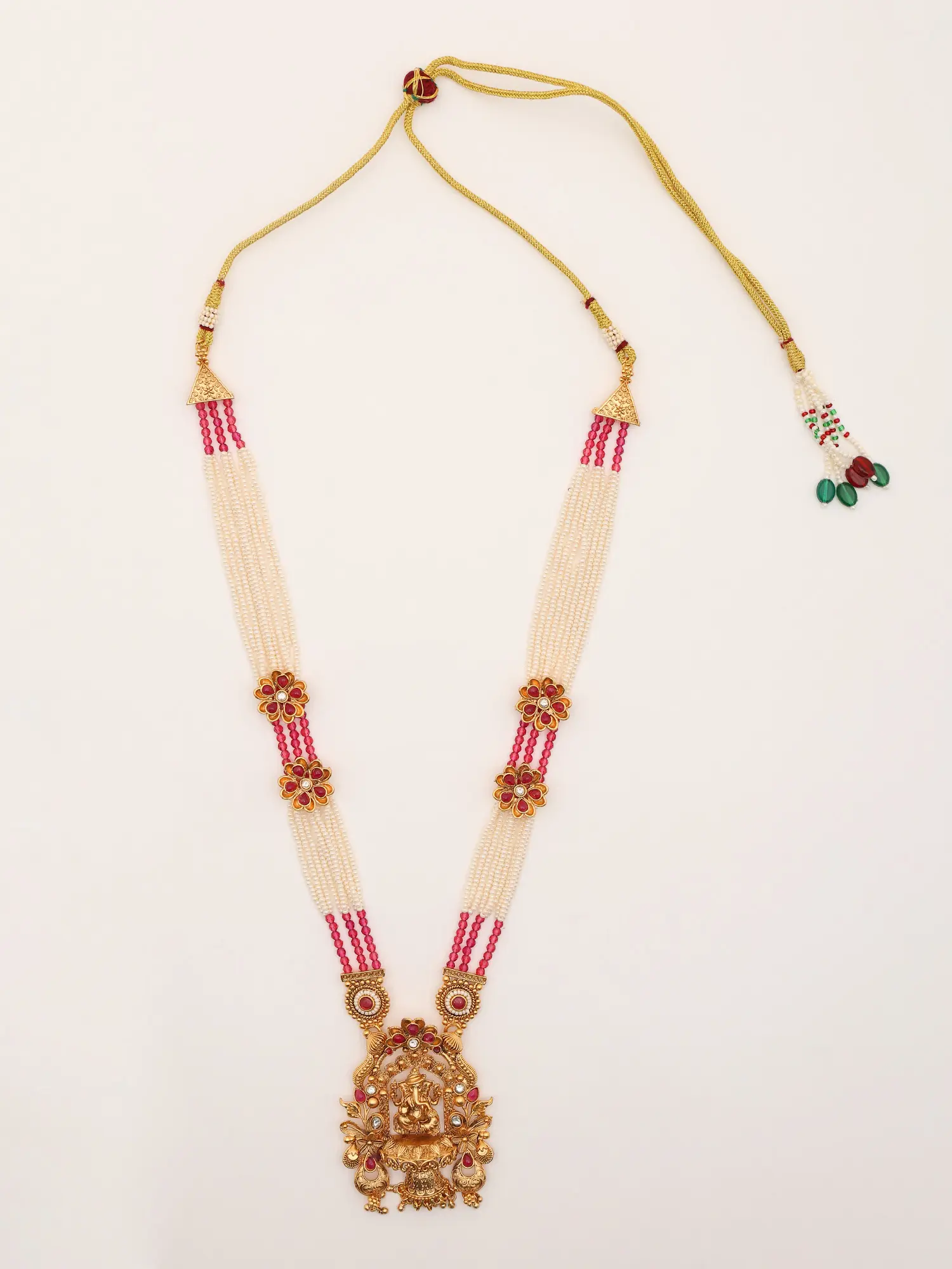 Stone Studded Goddess Lakshmi long Necklace Set with Earrings