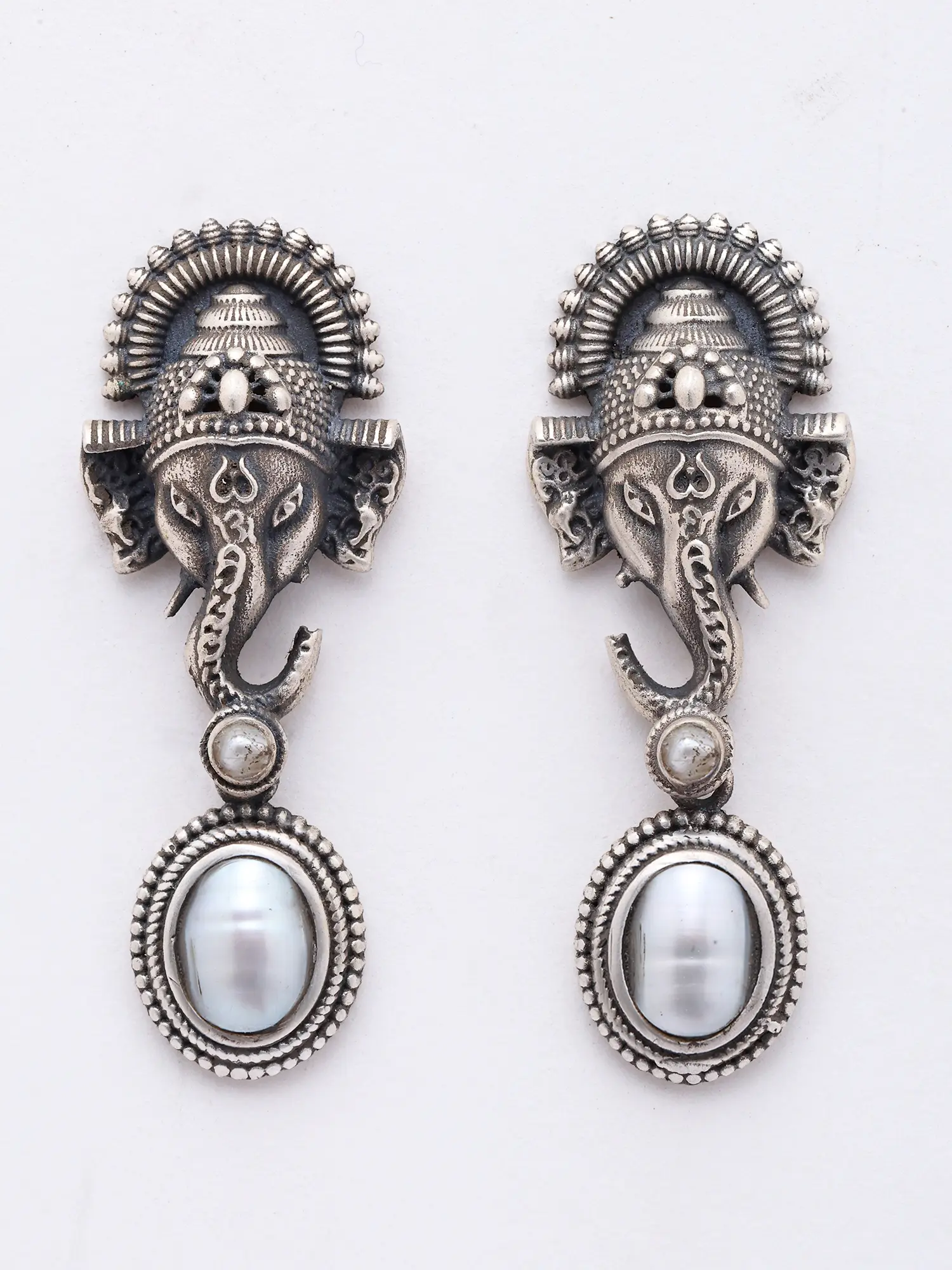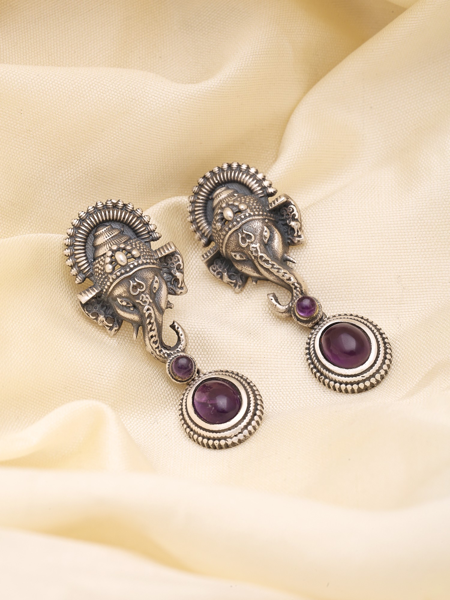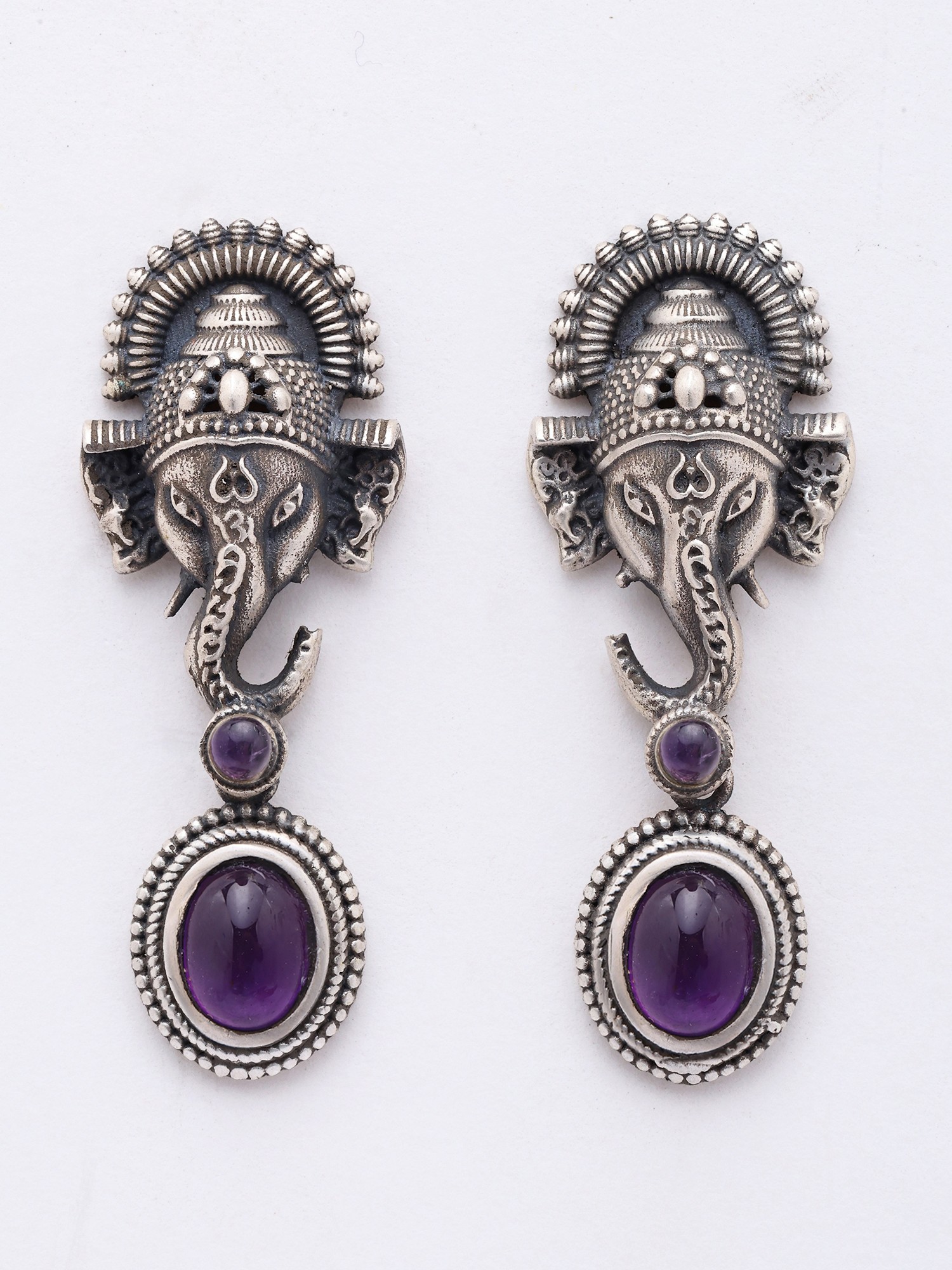 Sterling Silver Cow Earrings with a Rectangular Gemstone