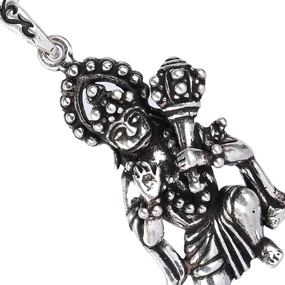 Invite the protective and unwavering spirit of Lord Hanuman into your life with this exquisitely crafted sterling silver pendant. Sourced from the spiritual heartland of Nepal, this pendant captures the divine essence of Bajrangbali, the devoted son of the Wind God. Each detail is meticulously rendered, showcasing Hanuman in a classic pose, radiating power, loyalty, and courage. The intricate design reflects the rich artistic heritage of the region, making this piece not just an adornment, but a testament to faith and craftsmanship.