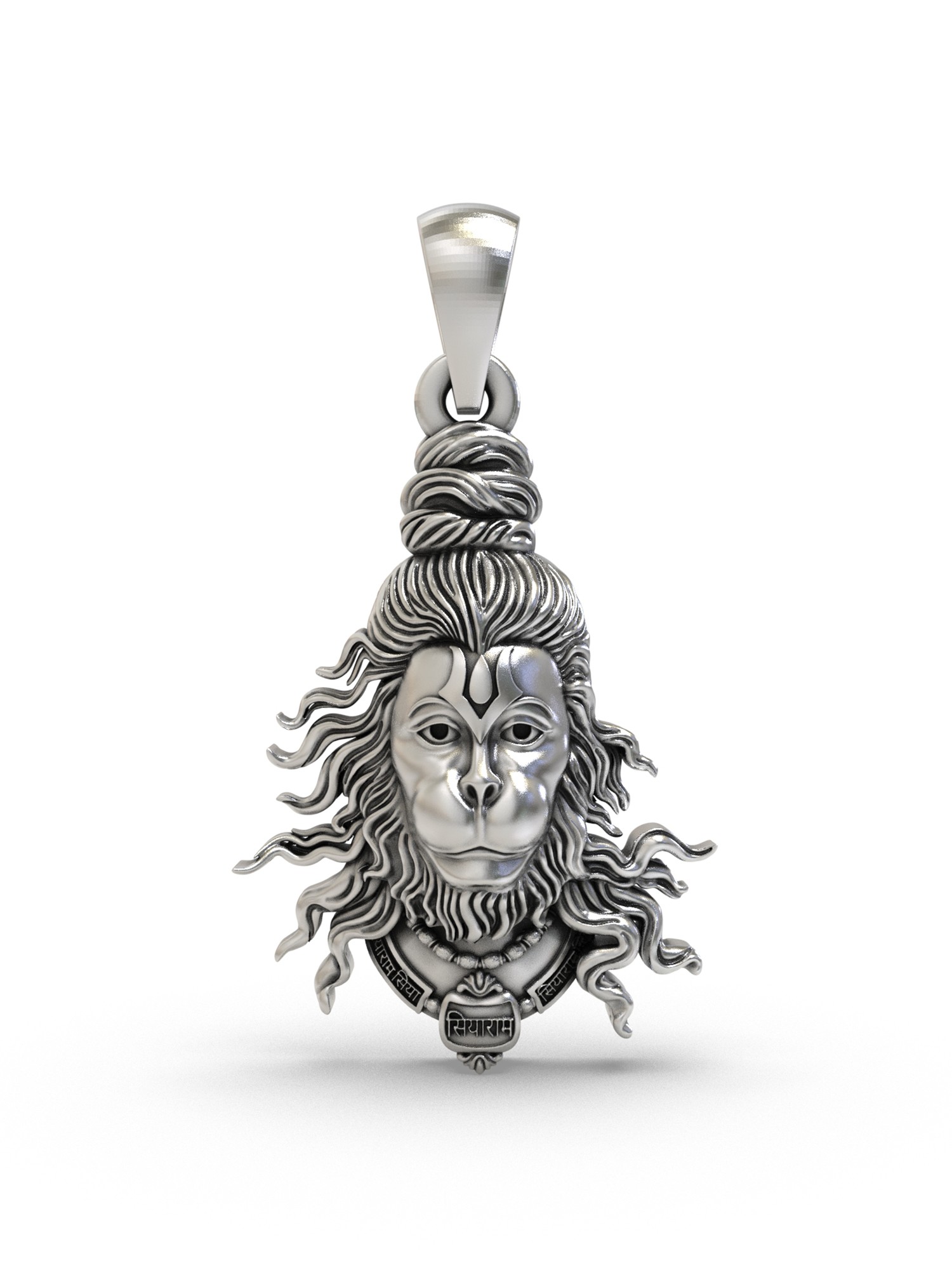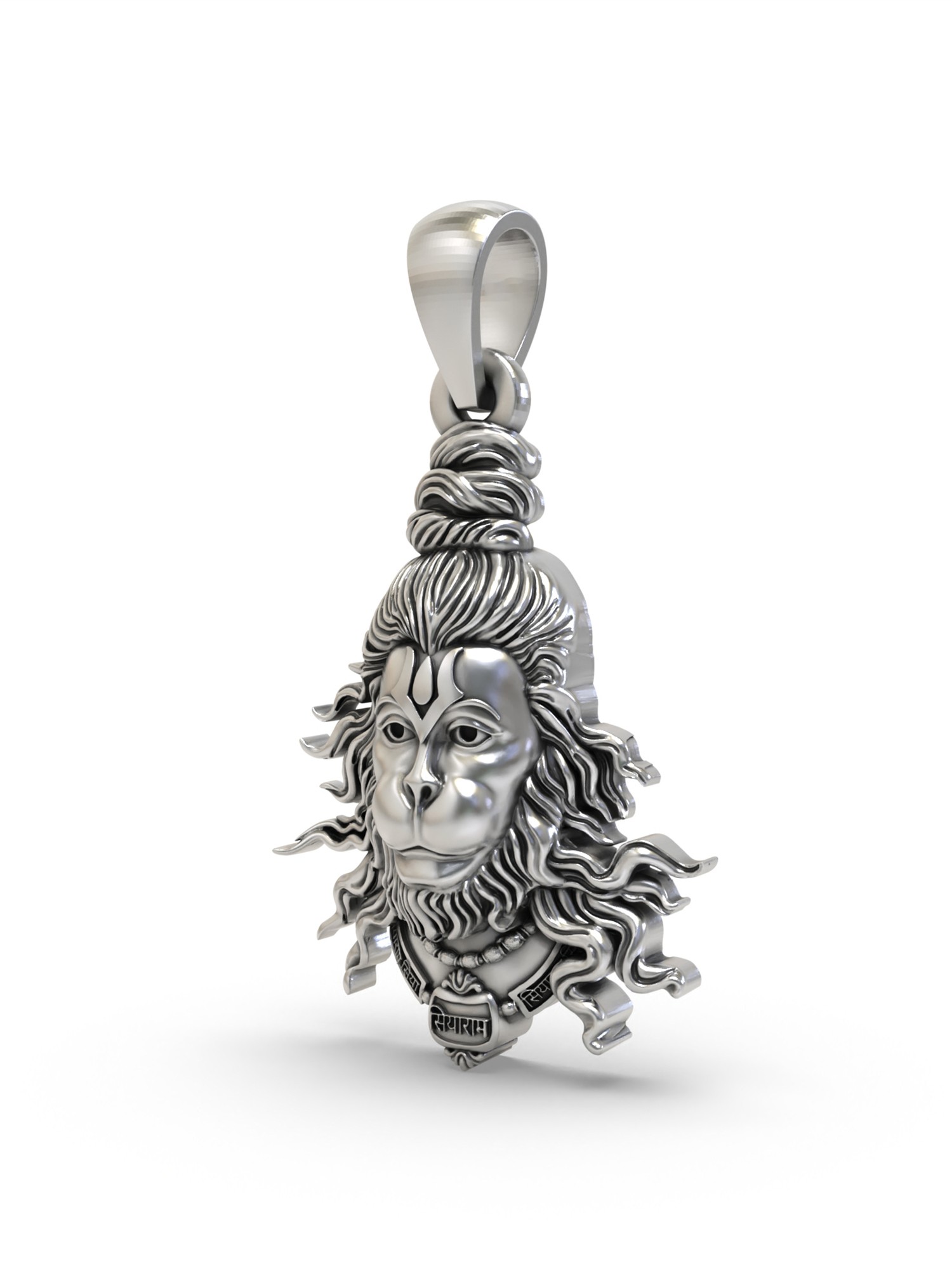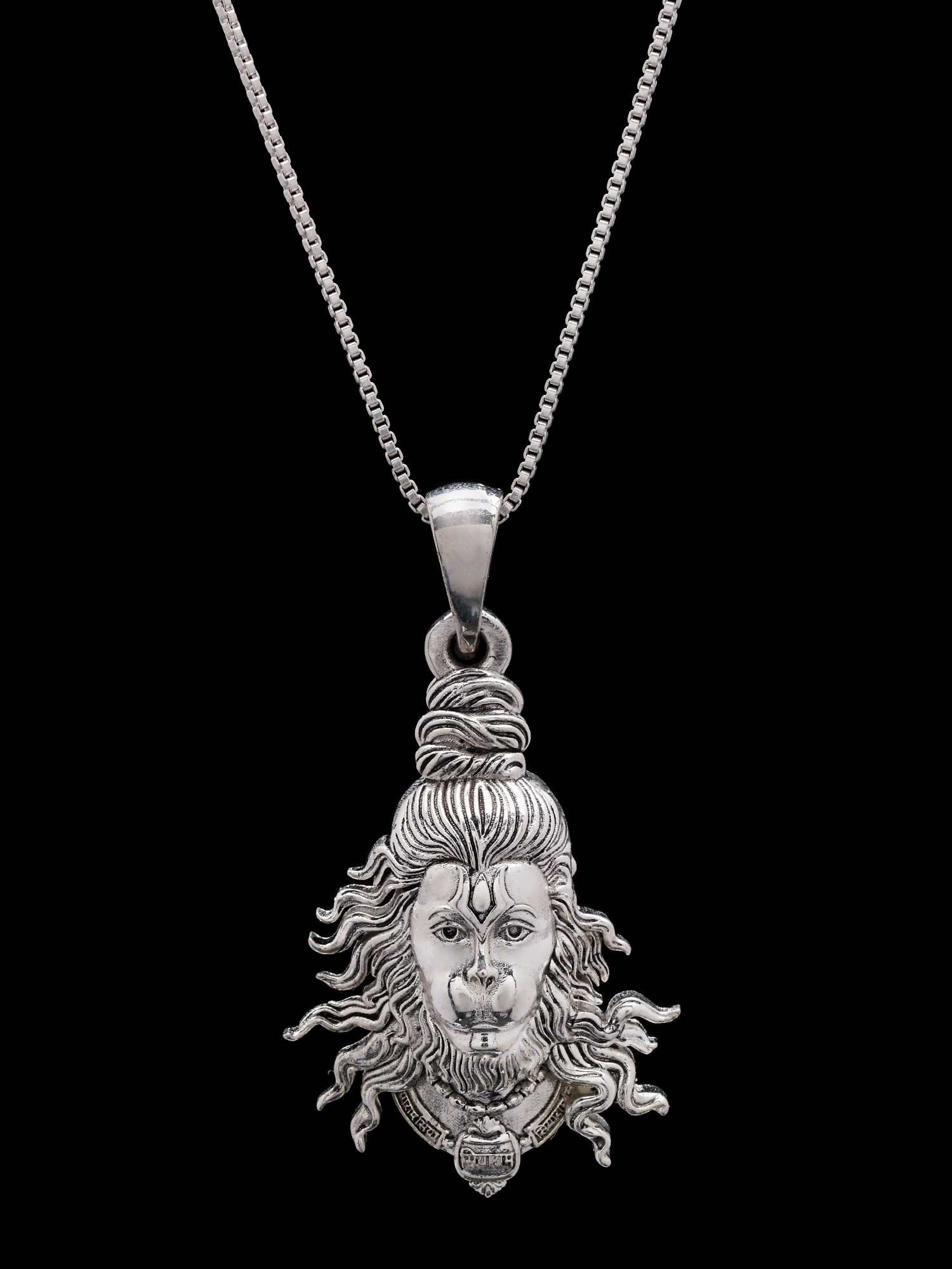 Every detail of this pendant has been carefully considered. The face of Hanuman is intricately sculpted, capturing the deity's serene yet powerful expression. His flowing locks and adorned neckline are richly detailed, bringing depth and texture to the design. The pendant is meticulously crafted from sterling silver, giving it a lustrous shine and ensuring its durability. The high-quality metal not only enhances the visual appeal but also makes the pendant a long-lasting treasure that can be worn daily or reserved for special occasions.