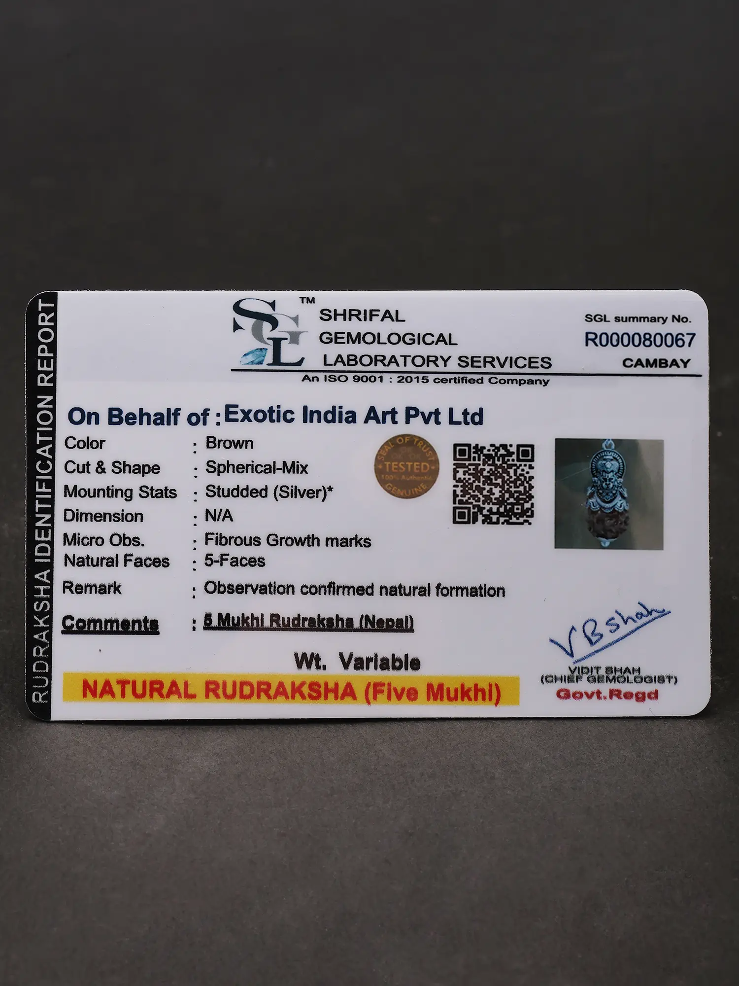 Lord Shiva with Genuine Certified Panchmukhi Rudraksha Pendant