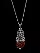 This exquisite pendant is a powerful fusion of spiritual symbolism and artisanal craftsmanship, designed to be a source of strength and an emblem of devotion. At its heart lies the revered face of Lord Hanuman, the embodiment of courage, loyalty, and unwavering faith. Each intricate detail of his divine visage is meticulously rendered in gleaming sterling silver, capturing his fierce yet benevolent spirit. The serene expression, the powerful jawline, and the divine aura surrounding him are a testament to the skilled artistry that has gone into its creation.
