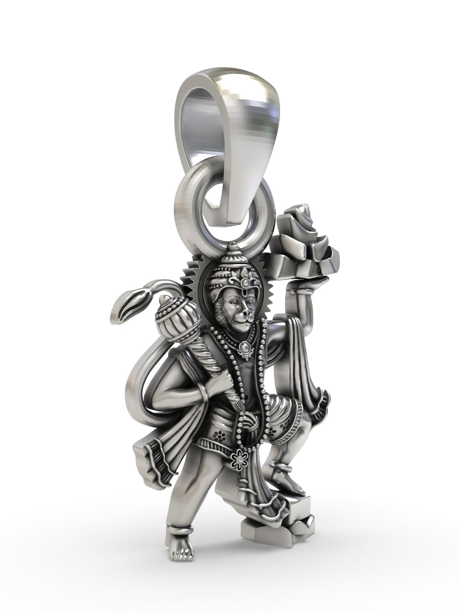 Stone Studded Lord Hanuman Face Sterling Silver Pendant