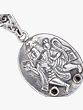 This exquisite pendant captures the dynamic spirit of Lord Hanuman, the devoted warrior and loyal companion of Lord Rama. Crafted from gleaming sterling silver, the pendant features a meticulously detailed relief of Hanuman in a powerful stance, exuding strength and unwavering resolve. His iconic mace is held ready, symbolizing his immense power, while the overall depiction conveys a sense of agility and courage. The design is a testament to the artistry and spiritual depth often found in handcrafted jewelry. ––––––––––––––––––––