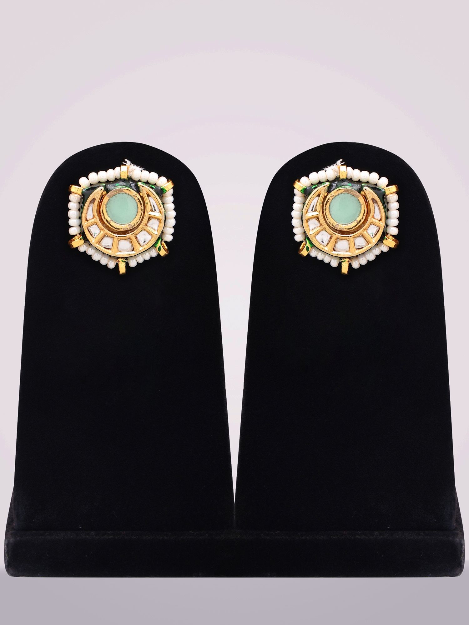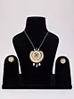 Features a central pendant and matching earrings adorned with intricate Kundan work.