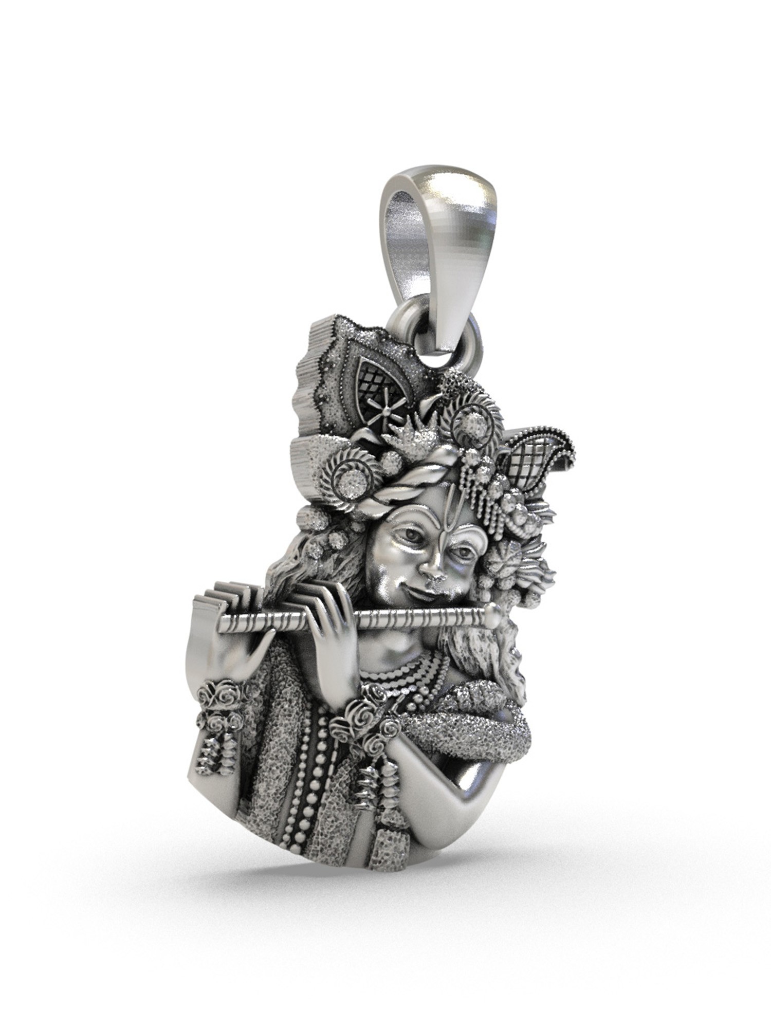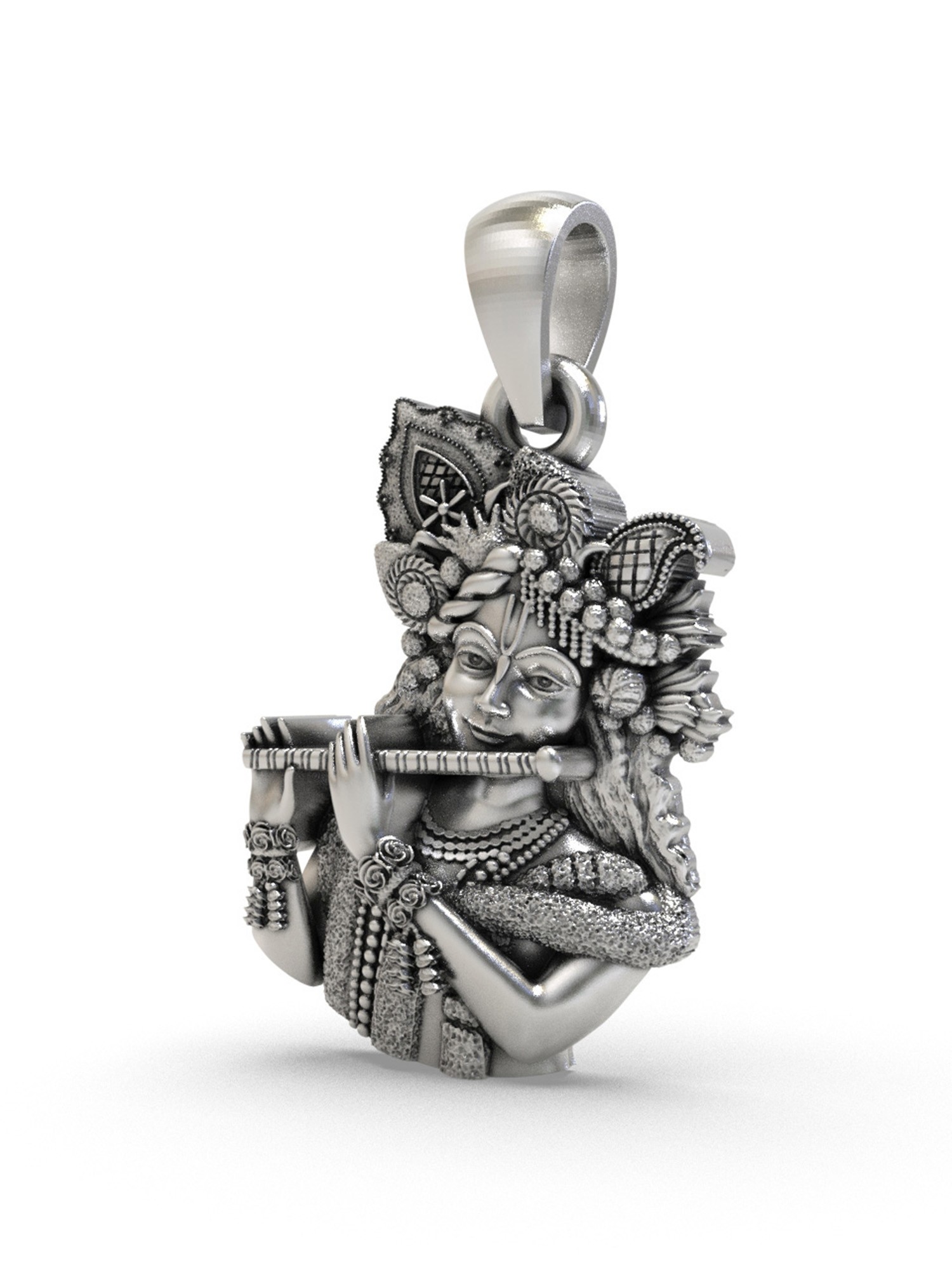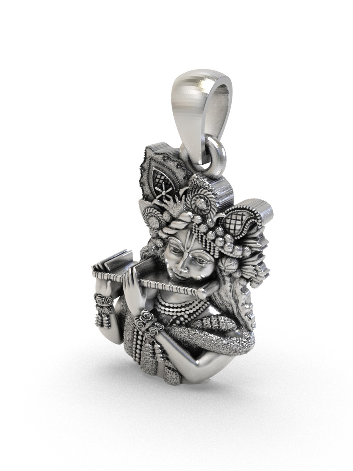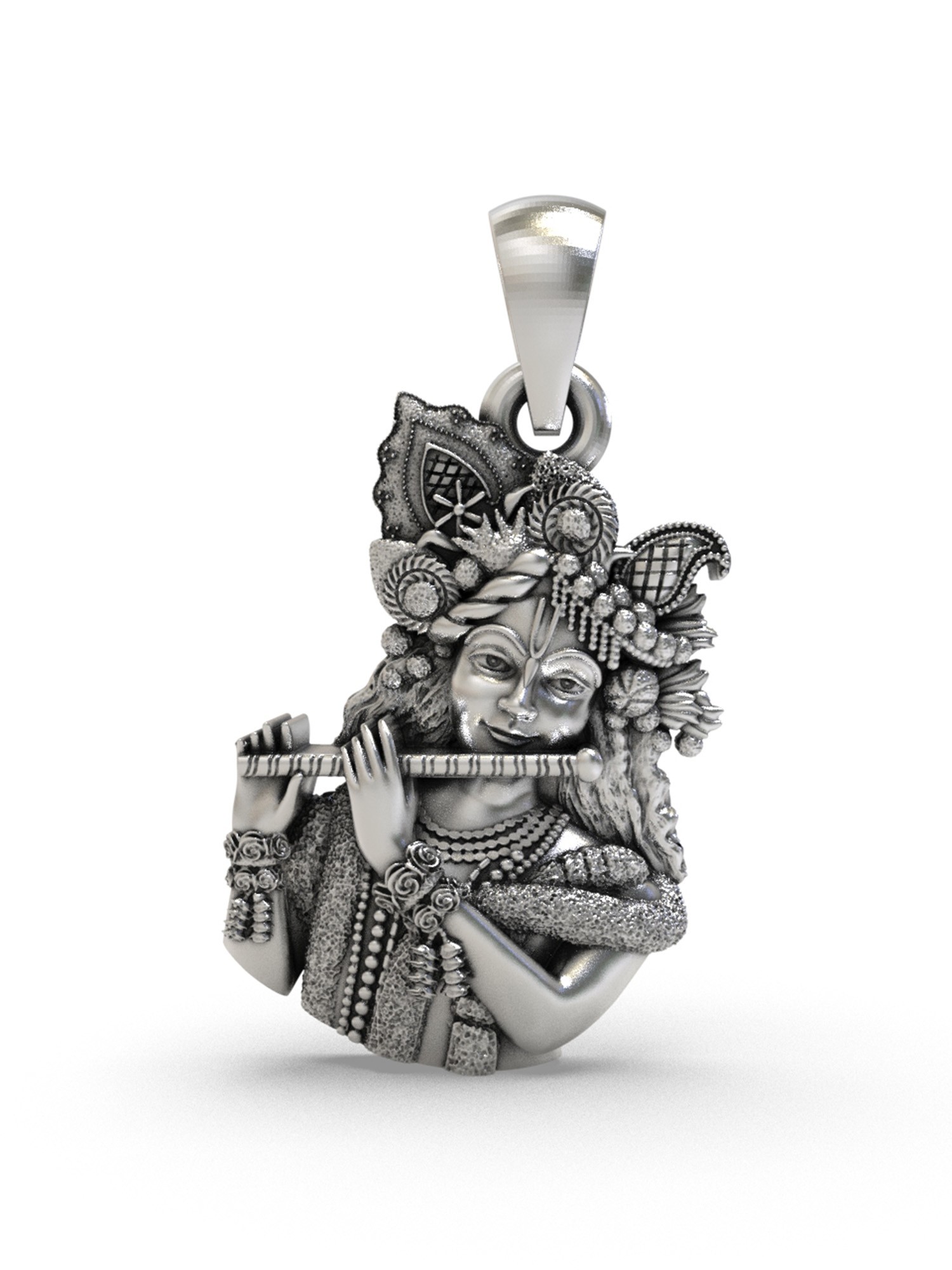Sterling Silver Murli Pendant with Round Shape Multi Gemstone